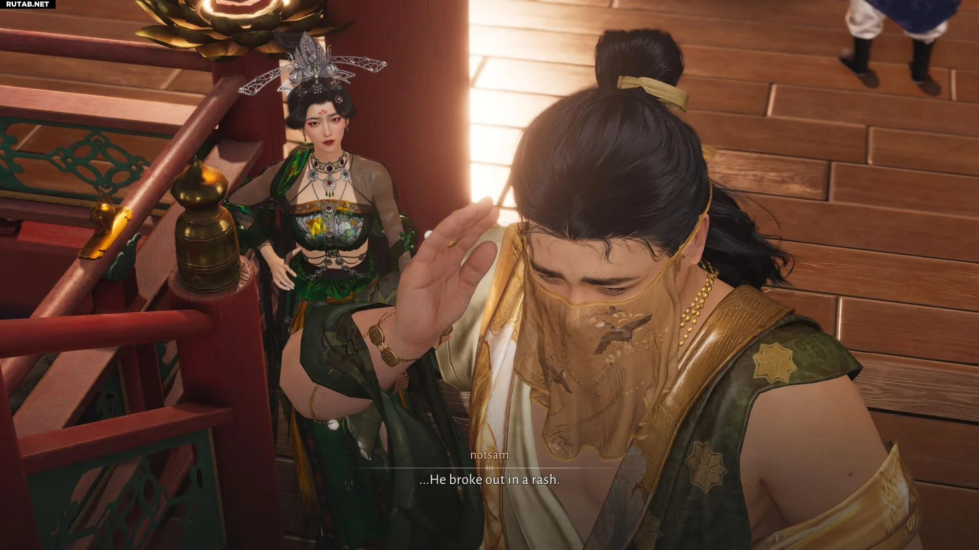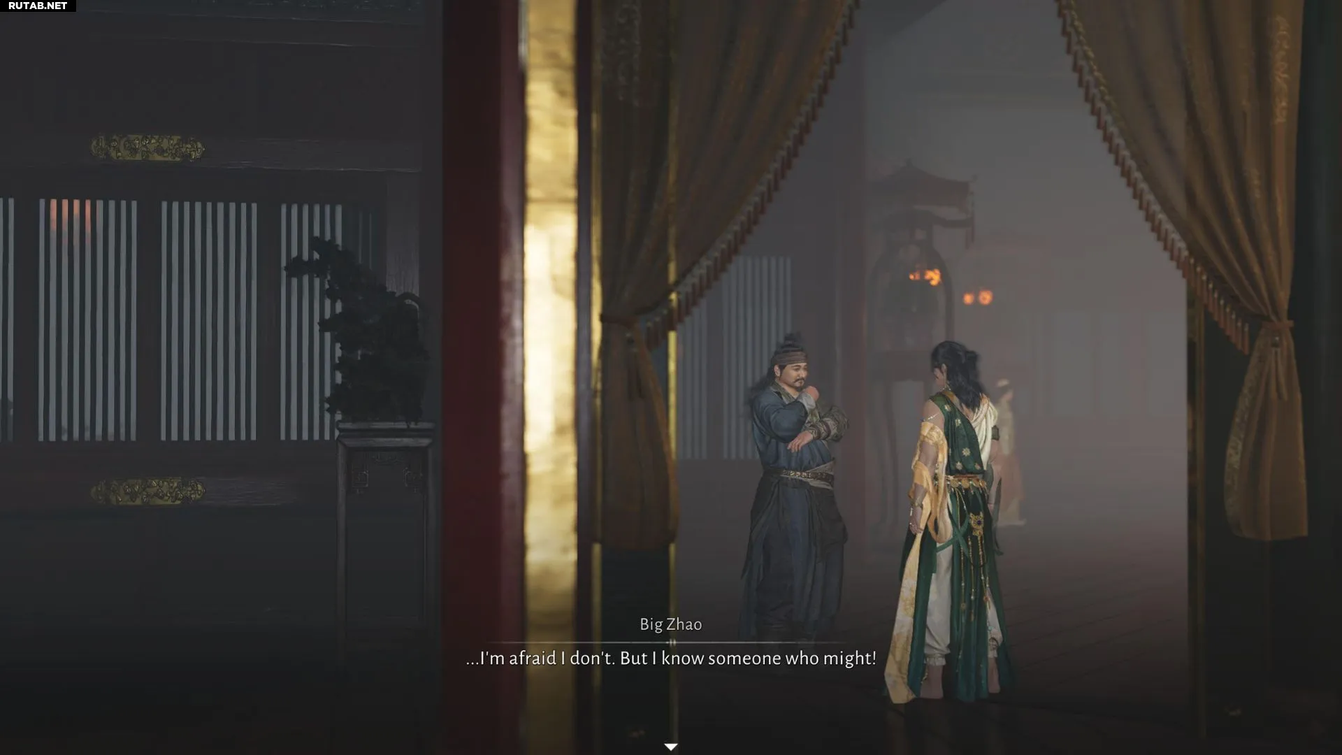 С угрозой пилюли над головой вы начинаете расследование. Сначала подойдите к ближайшему балкону и подслушайте напряжённый разговор между Большим Чжао и префектом. Это раскрывает важный поворот сюжета: Большой Чжао и префект оказываются братьями.