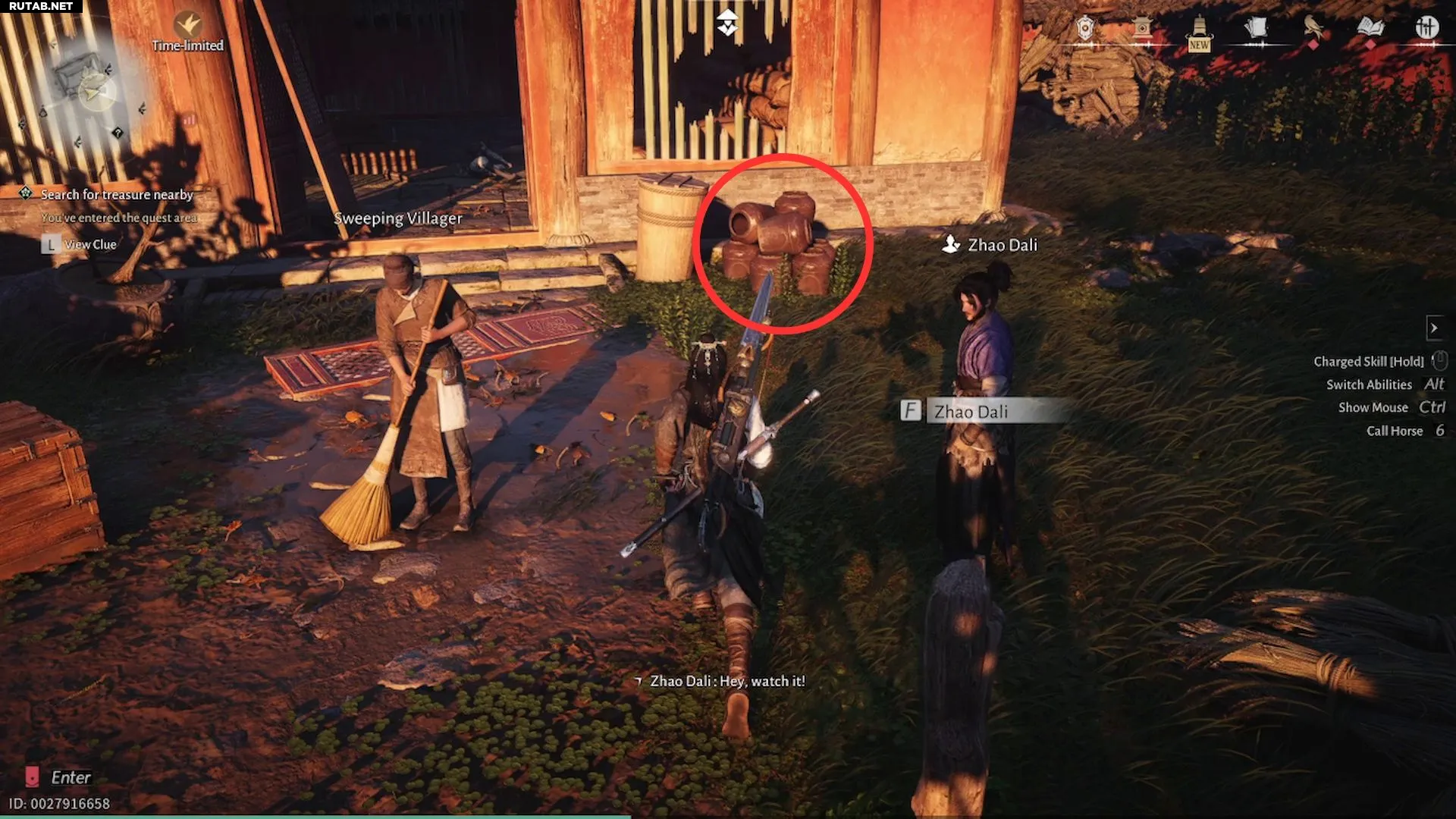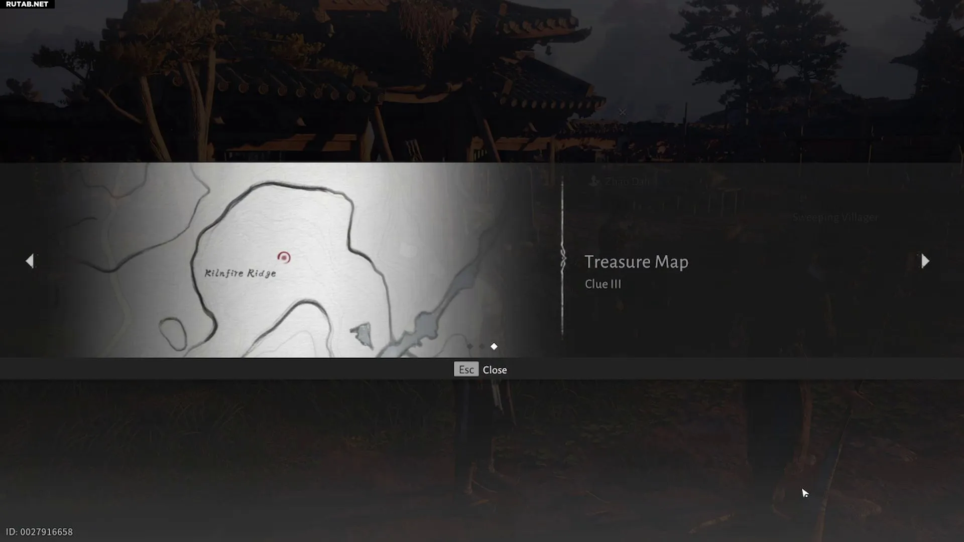 Эта карта ведёт к Святилищу Генерала — локации начала игры, где проходят поединки на арене. Напротив арены находится большое строение, где можно найти Фу Лушоу и Чжао Дали. Рядом со строением стоят разбивающиеся горшки, сложенные у стены (показано выше). Разбейте их, чтобы найти следующую подсказку. Затем поговорите с Подметающим Жителем поблизости, чтобы обновить задание.