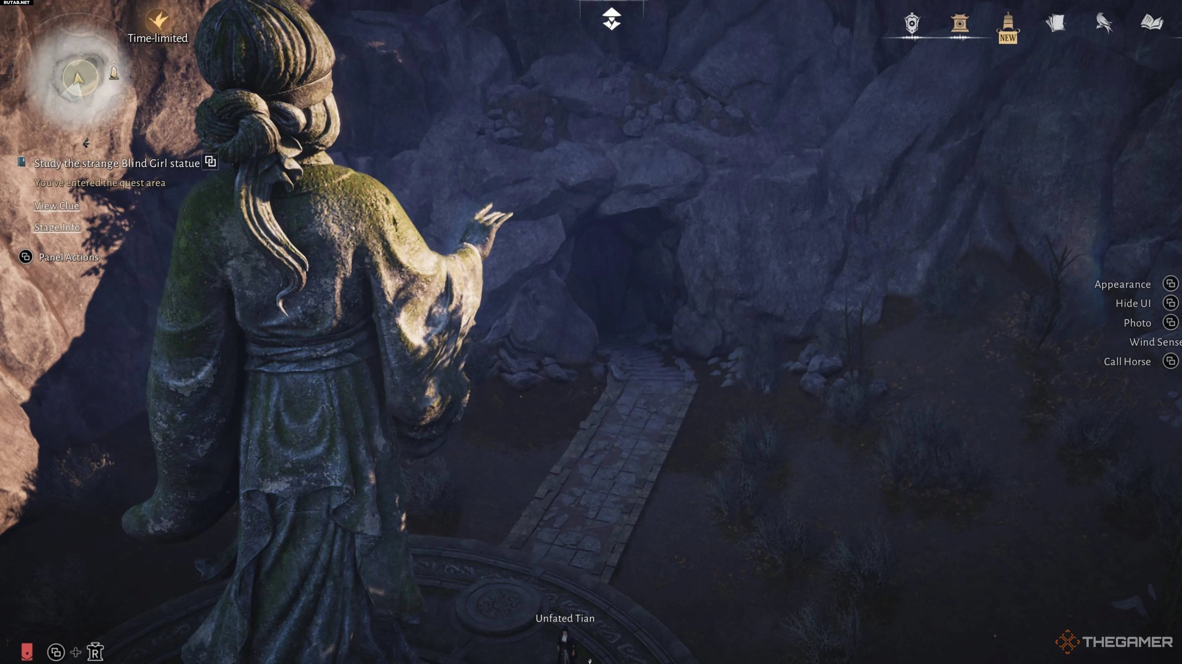 Квест Слепой к миру находится в регионе Цинхэ, у горы Лунной Завесы. Он сосредоточен вокруг местного озера и статуи под его водами. Хотя ваш персонаж обратит на неё внимание, взаимодействовать с ней вы не сможете, пока не начнёте связанный с ней квест. Для этого вам нужно встретиться с Несудьбоносным Тянем, который стоит на одном из утёсов над озером.