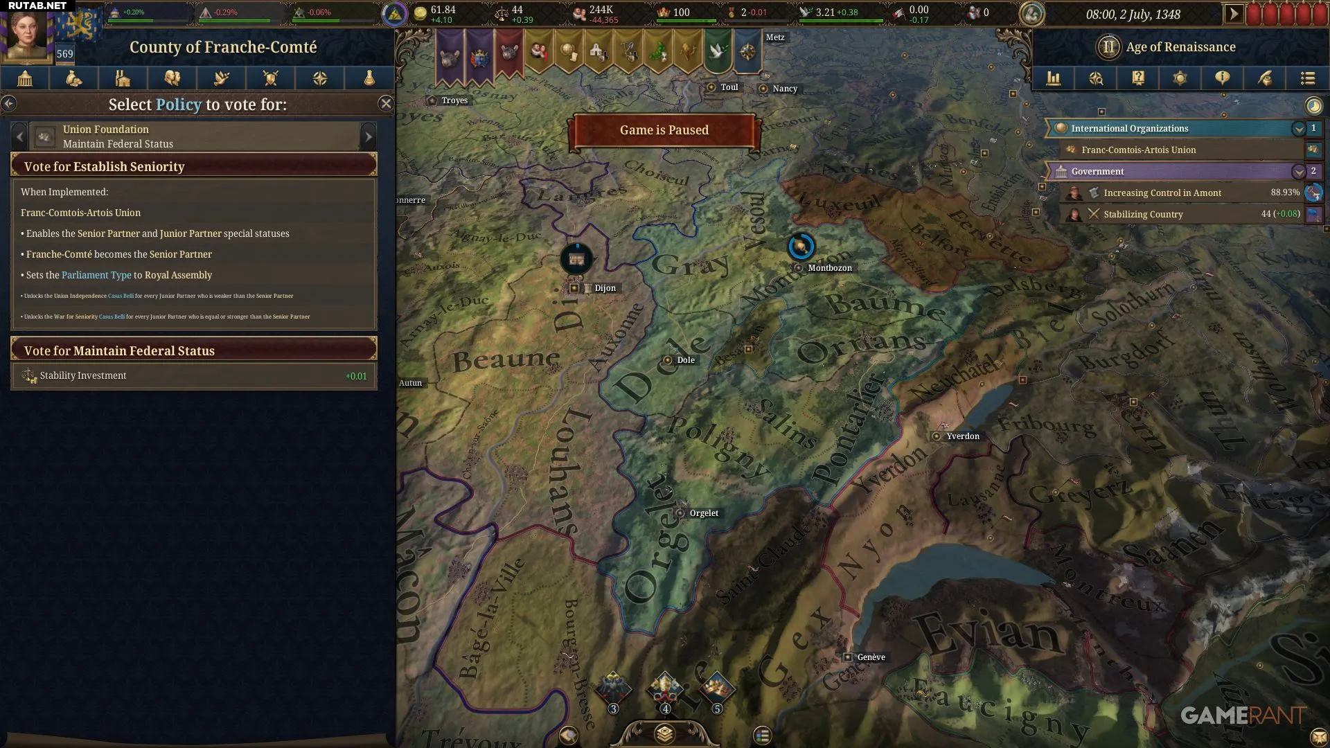Теперь в окне унии появится вкладка парламента со своей поддержкой и возможностью созыва. Оба партнера также получат новые поводы для войны, связанные с унией.