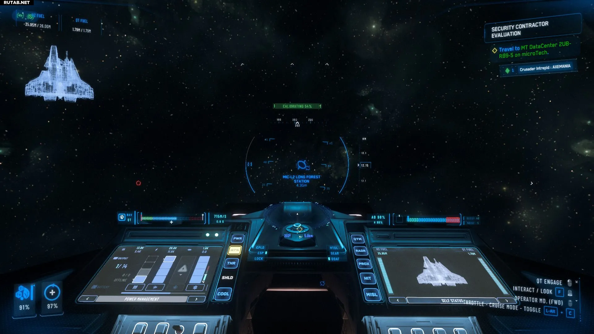 Перед вылетом из ангара нужно связаться с диспетчером. Можно сделать это через меню связи (F1 → вкладка «Связь» → выбор канала зоны) или просто нажать Alt + N. Также запрос можно отправить через мониторы связи в кабине корабля.