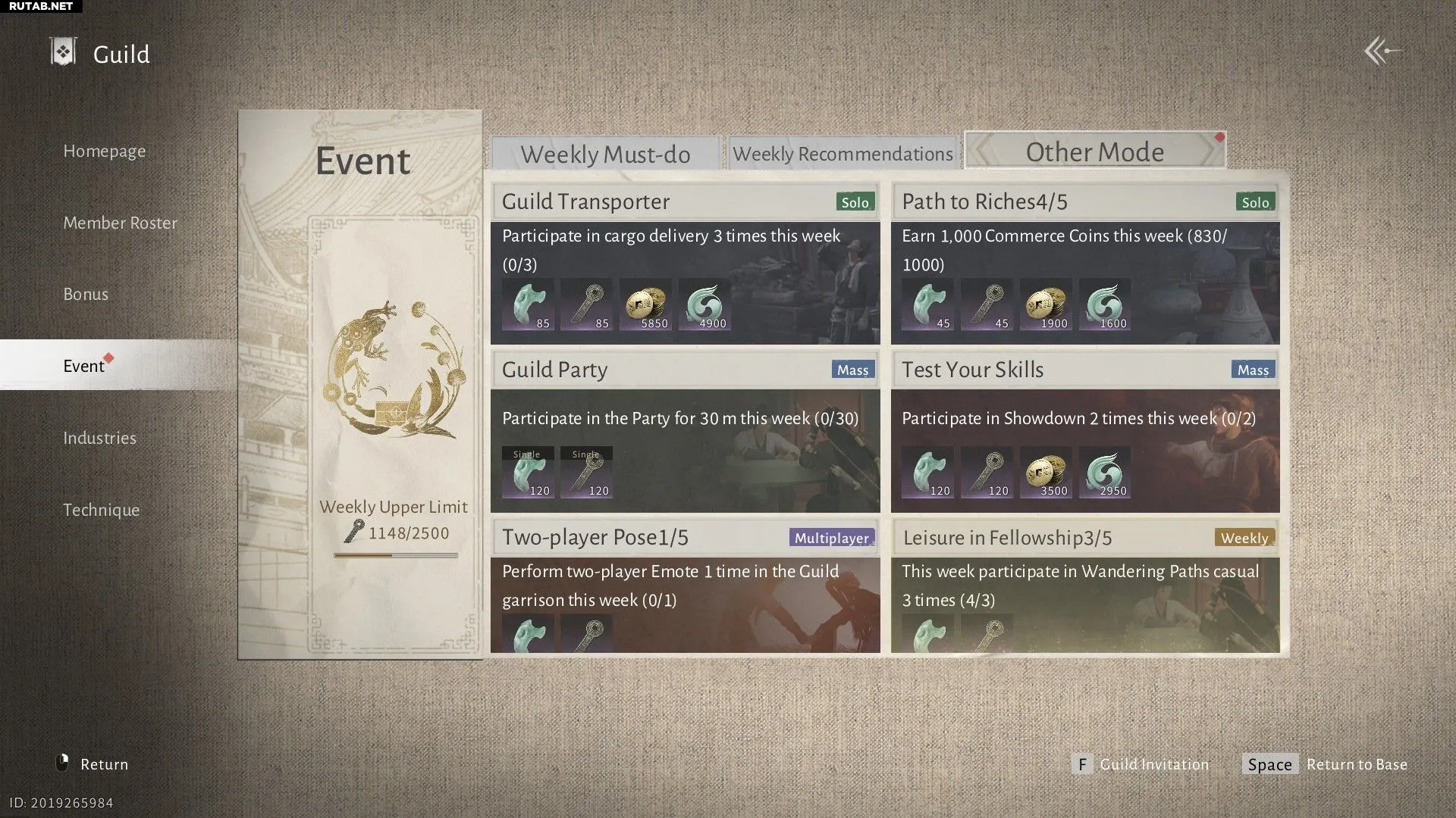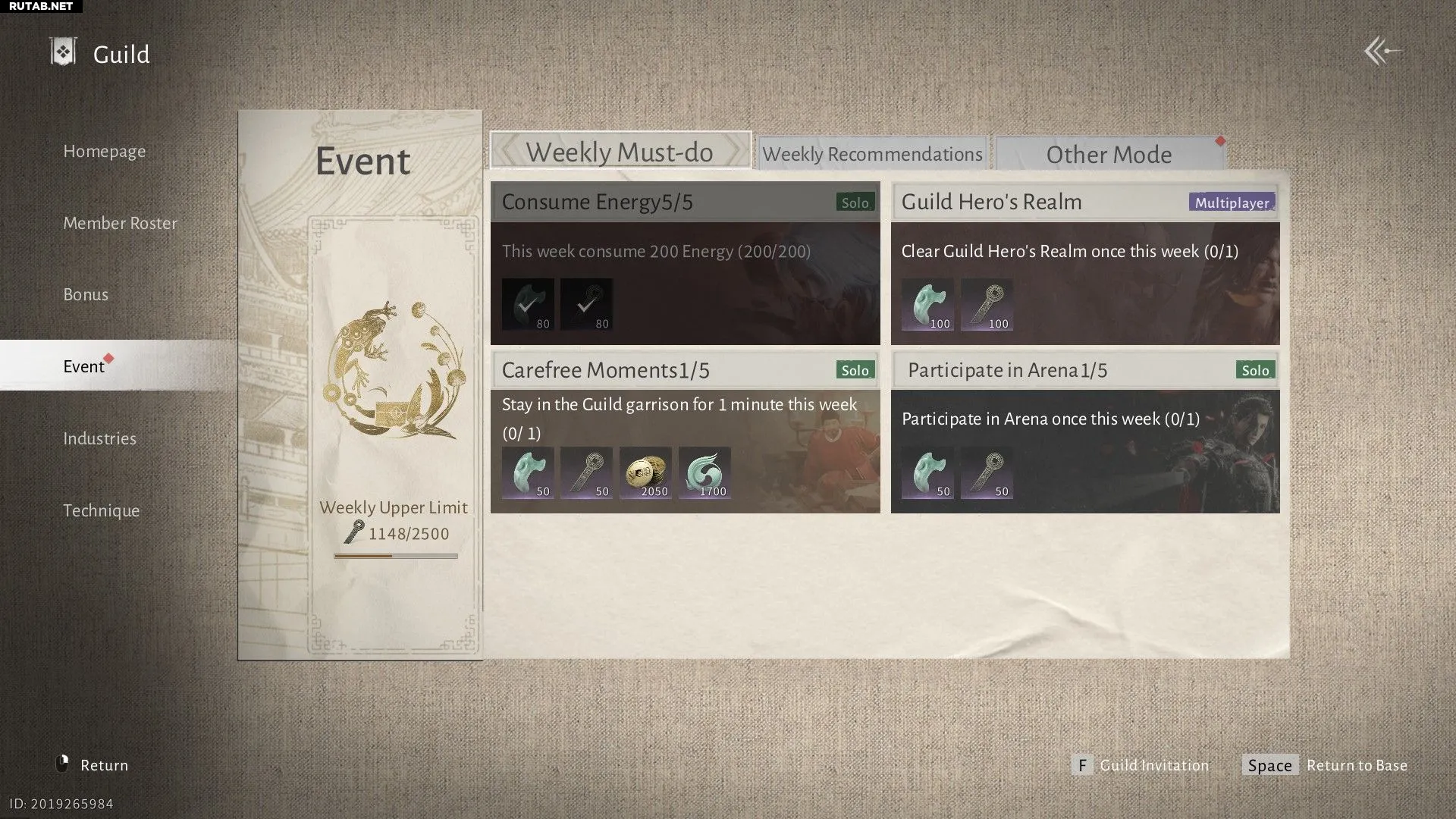 - Еженедельные задания гильдии: Как и ежедневные задания, эти еженедельные испытания гильдии требуют от игроков выполнения различных активностей в открытом мире и кооперативном режиме. После завершения необходимо перейти на соответствующие вкладки, чтобы забрать награды.