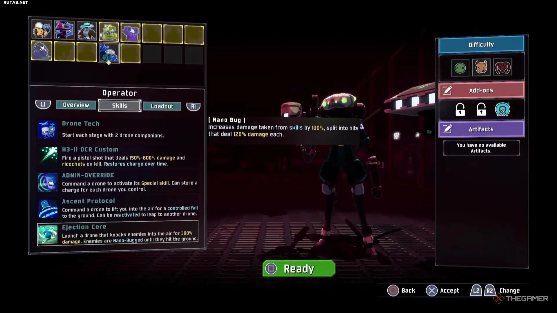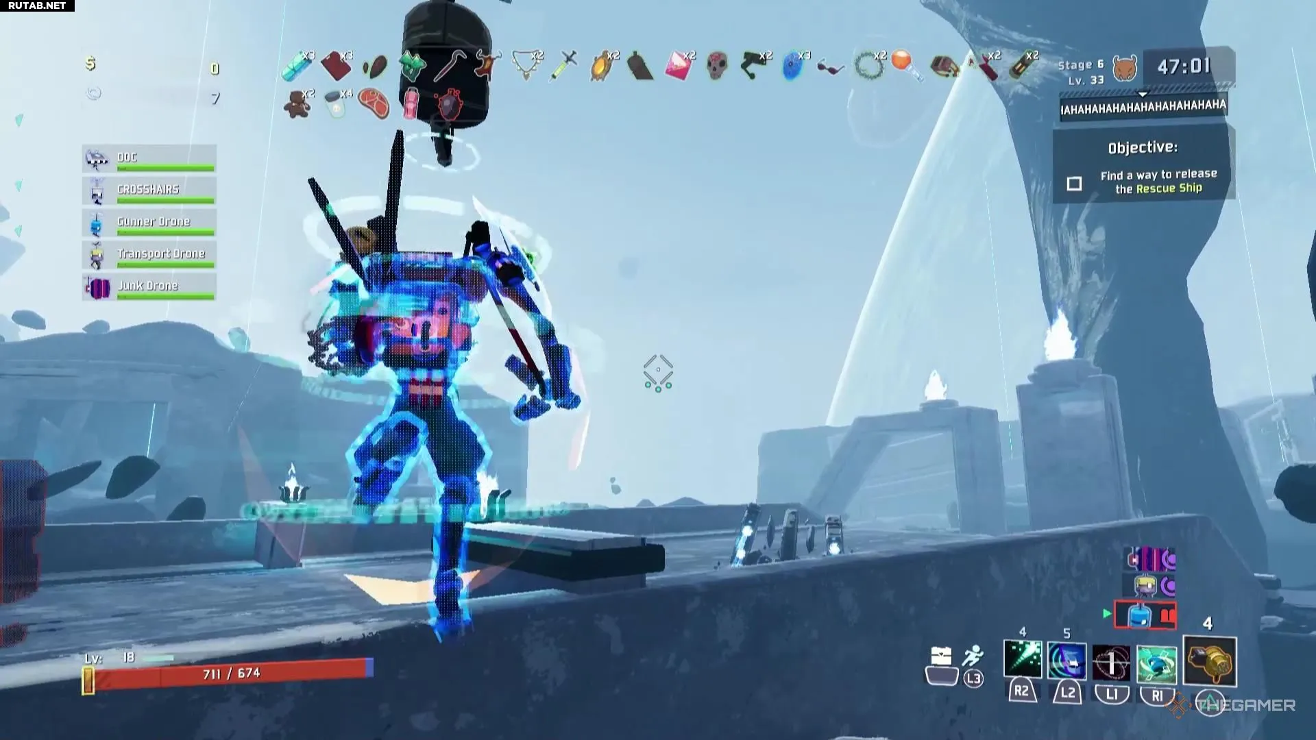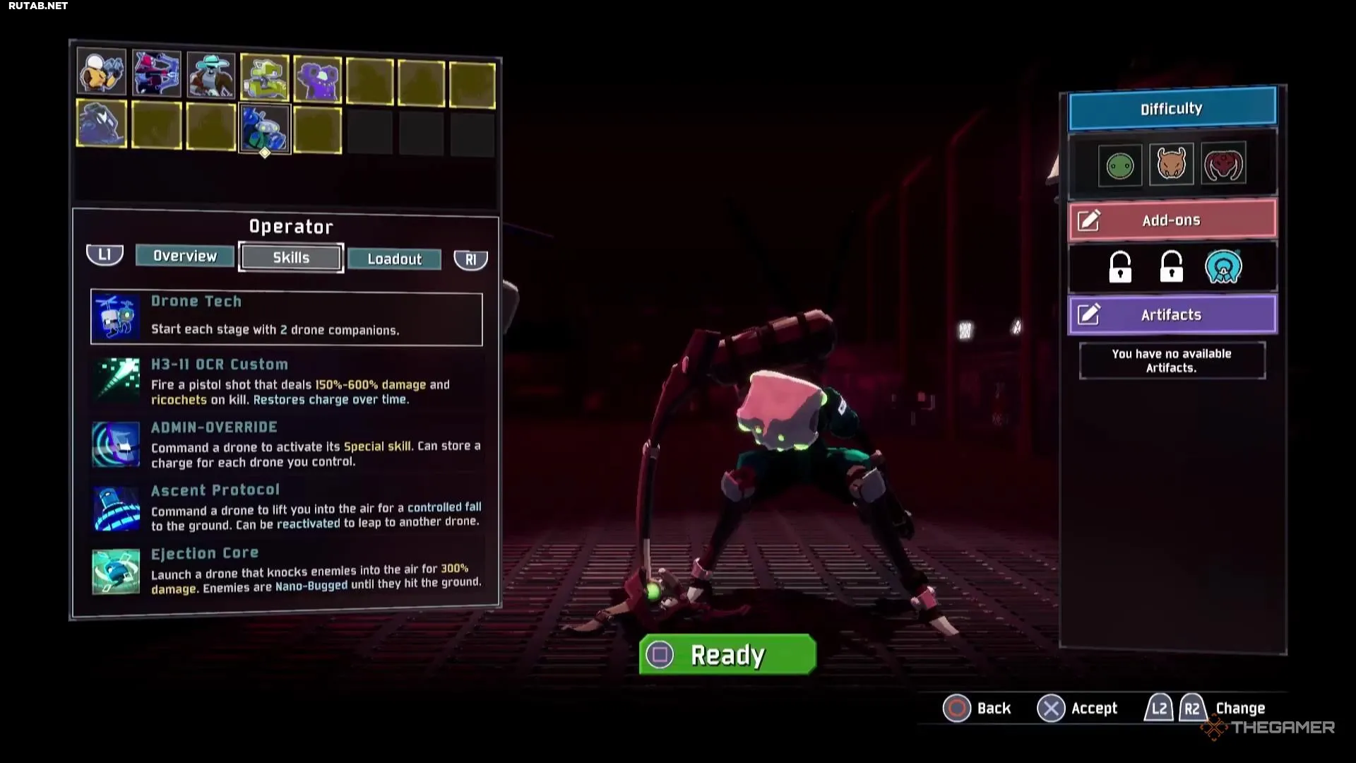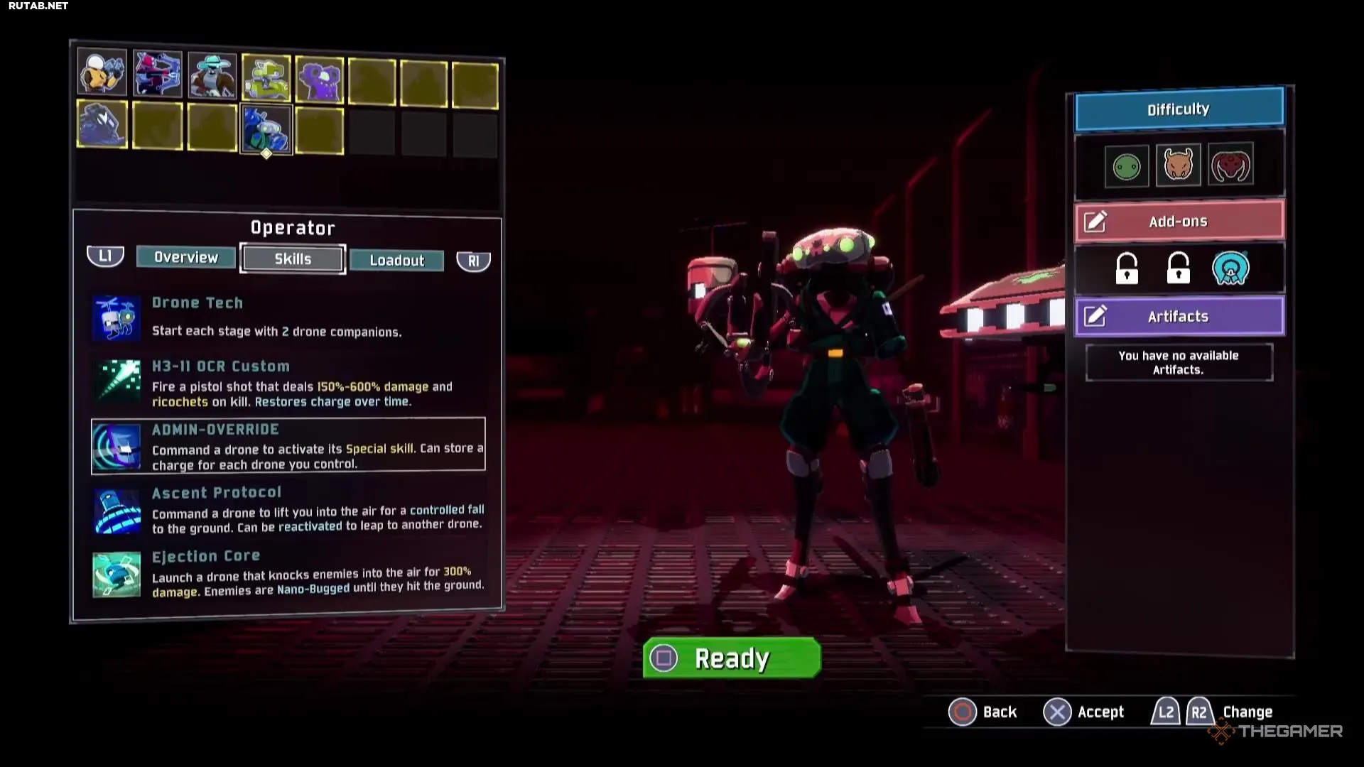 Эта способность заставляет текущий дрон использовать уникальное умение. На панели навыков отображается очередь дронов. Каждый новый дрон, найденный во время забега, добавляется в ротацию.