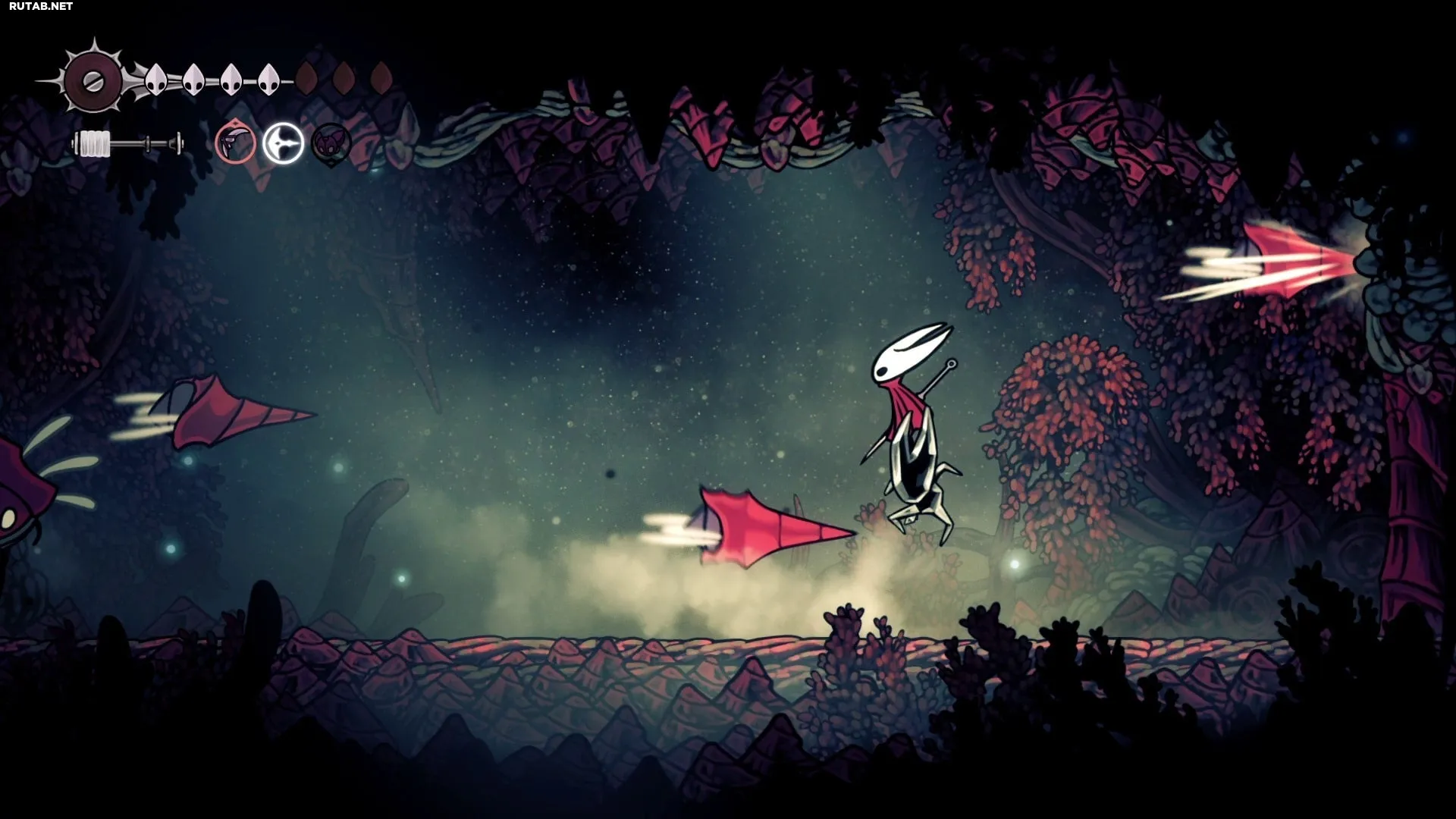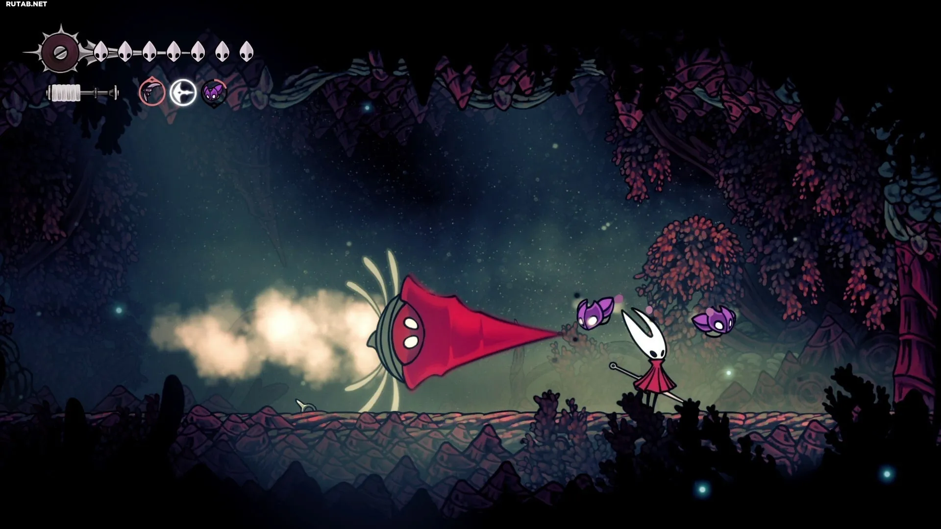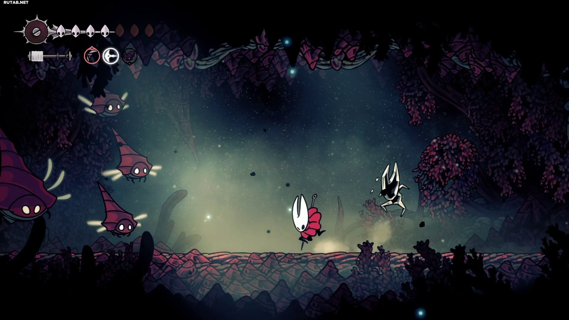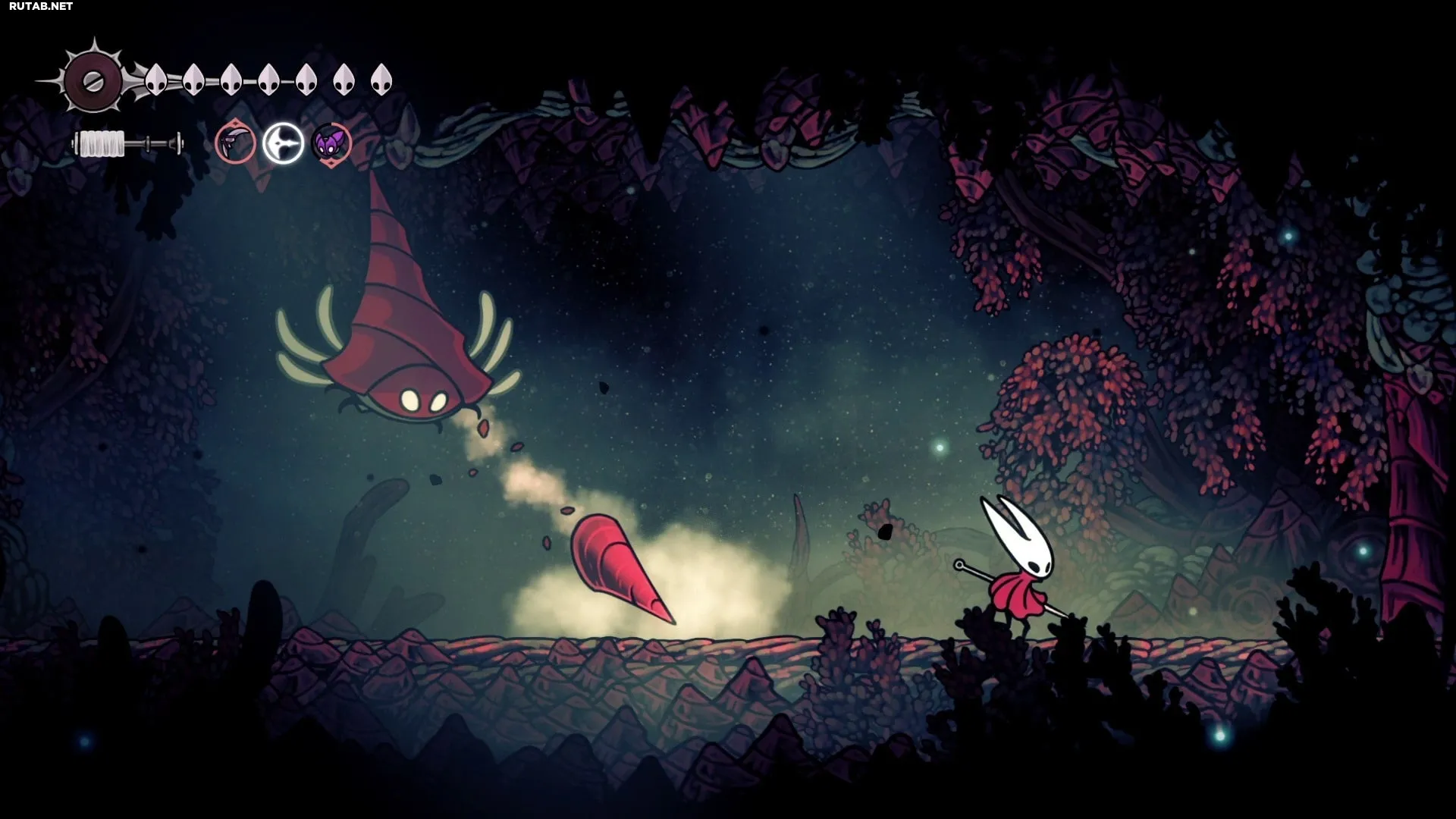 - Три ракушечные мухи поочерёдно проносятся горизонтально через арену, а Разъярённая ракушечная муха одновременно атакует Хорнет. Дождитесь окончания атаки и увернитесь от всех мух.