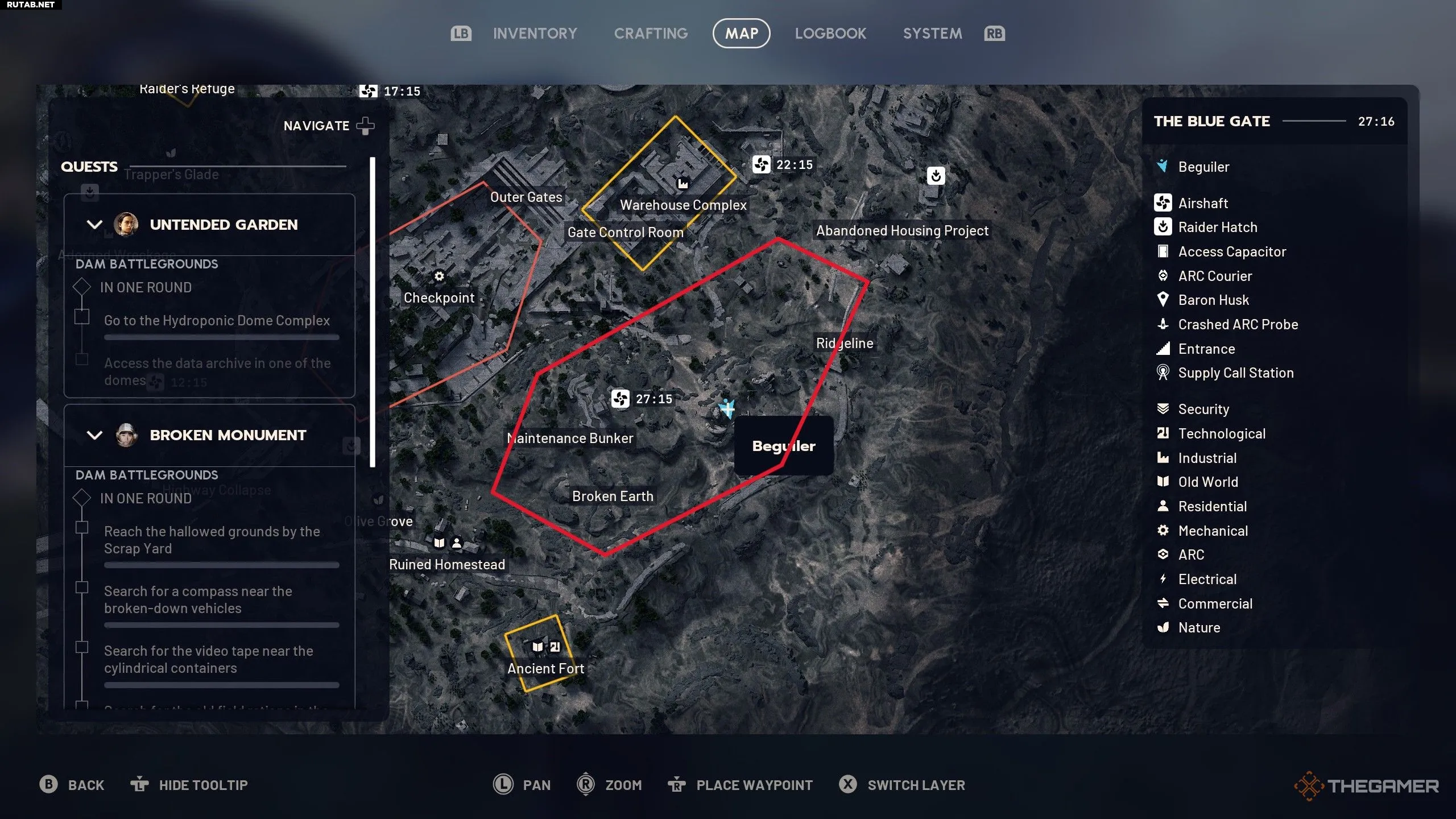 Я настоятельно рекомендую выполнять это испытание у Синих Ворот, особенно в юго-восточной части карты (показано выше) — между Древним фортом и Комплексом складов. Это место представляет собой настоящее кладбище оболочек Первой волны. Мне удалось получить три звезды за испытание, просто пробежавшись по этой территории днем и взломав все останки ARC.