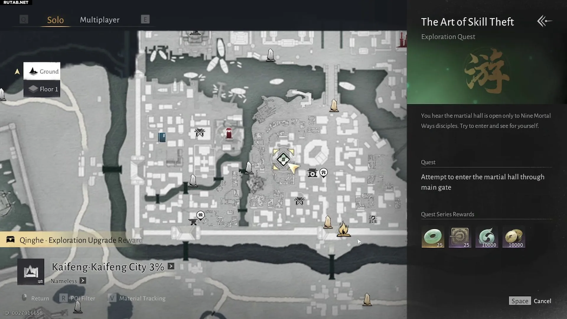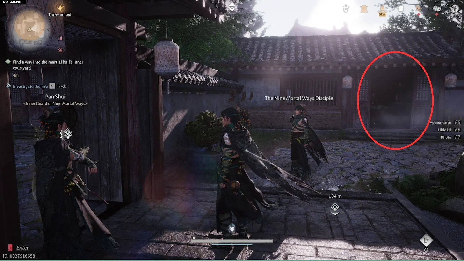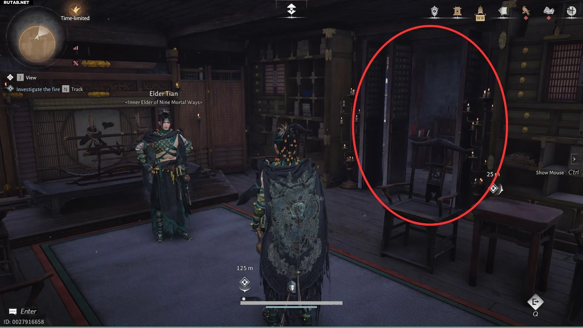 После успешной кражи умений пройдите через боковую дверь в комнате Старца Тяня в задний двор, чтобы найти Таинственного старца и завершить задание.