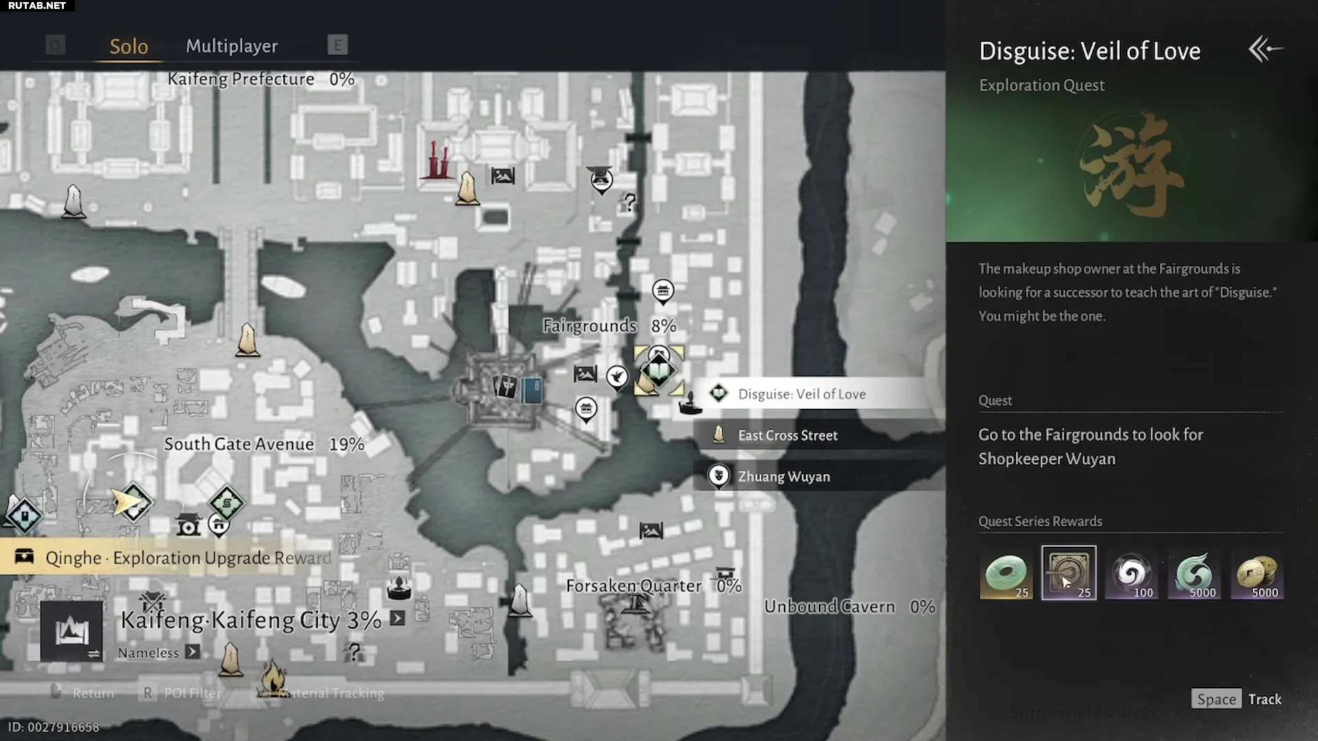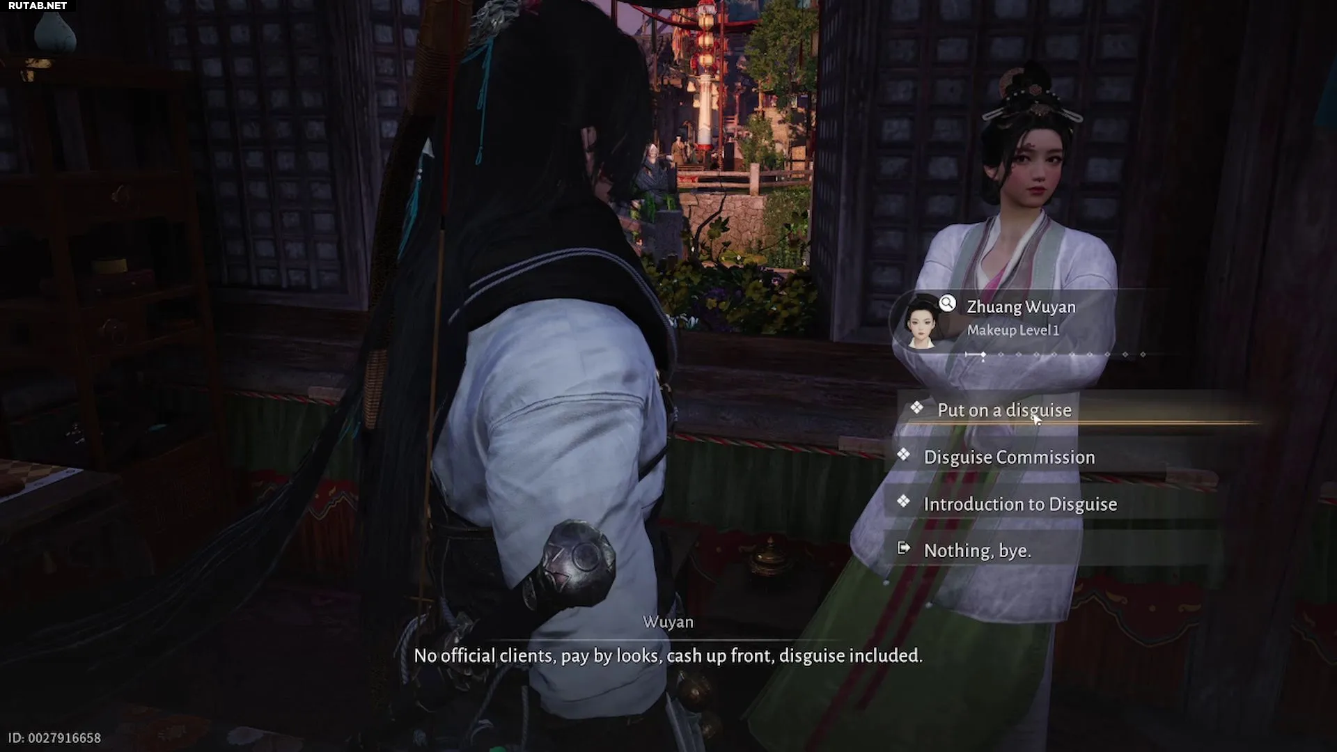 Если вы впервые меняете disguise, сначала нужно выполнить задание «Маскировка: Завеса любви». Следуйте маркеру в район Ярмарки в Кайфэне, чтобы поговорить с Вуянь, владелицей магазина масок.