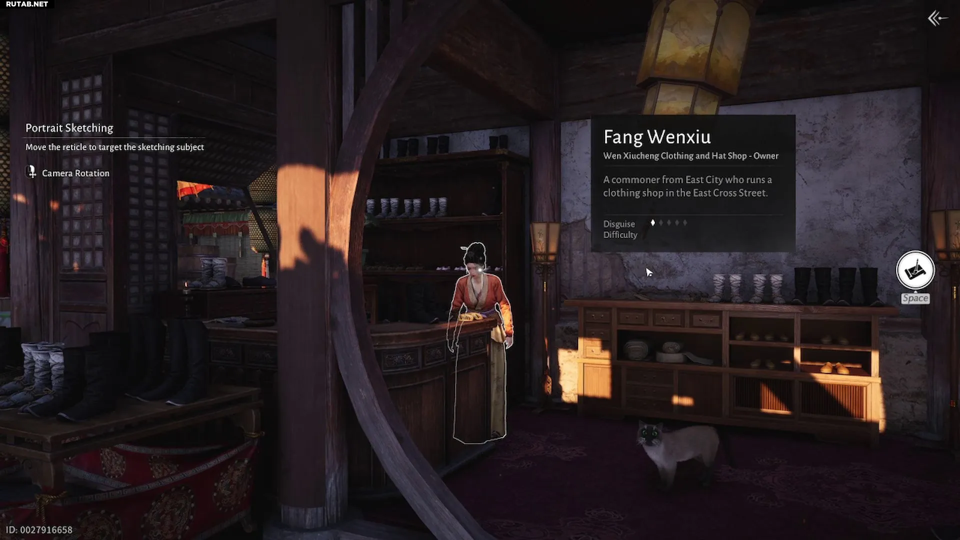 Маркер задания обновится, указав, что нужно «Нарисовать портрет Маддла» — ученика секты, отдыхающего снаружи. Найдите Маддла и нажмите G, глядя на него, чтобы начать задание по маскировке.