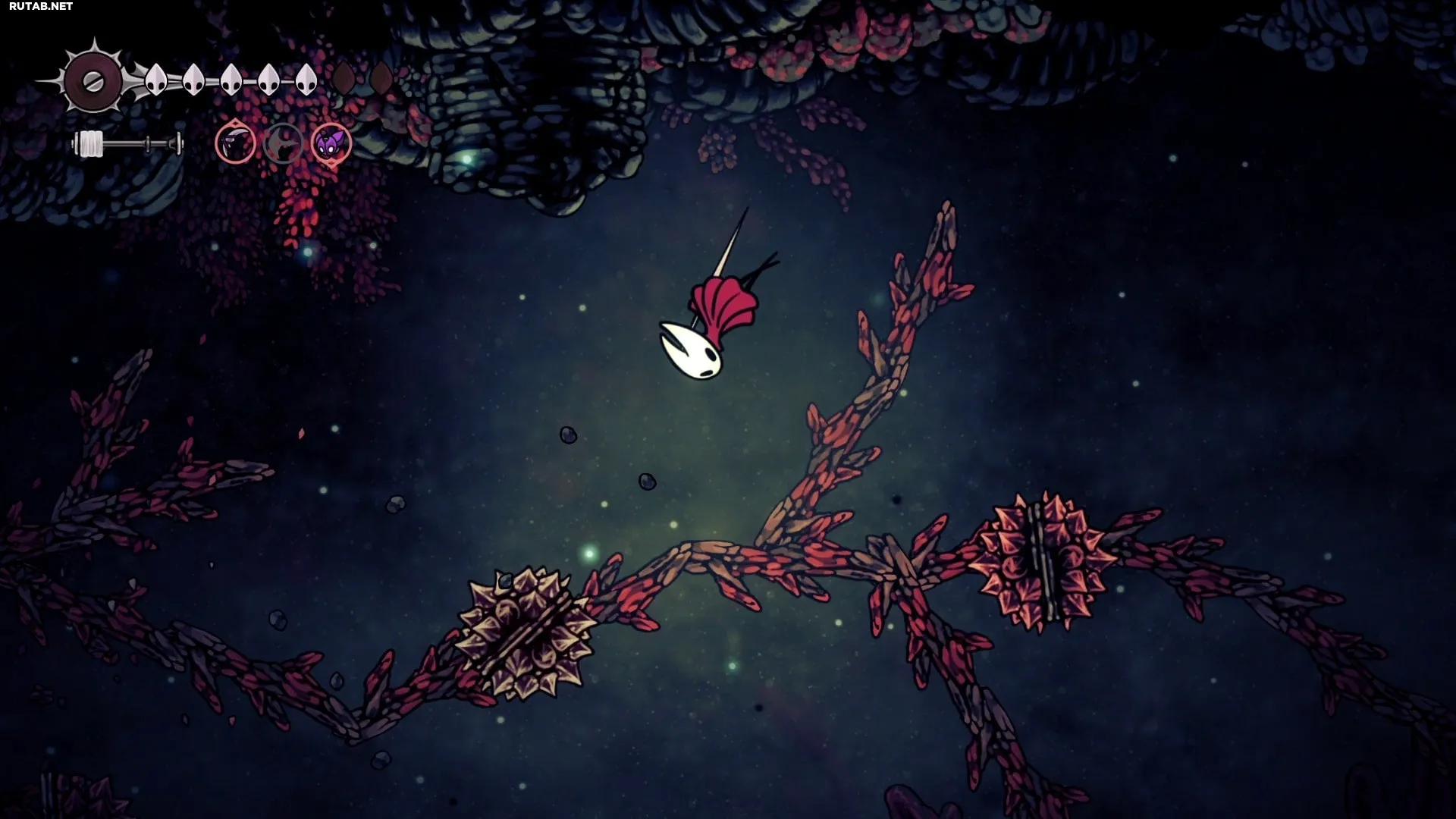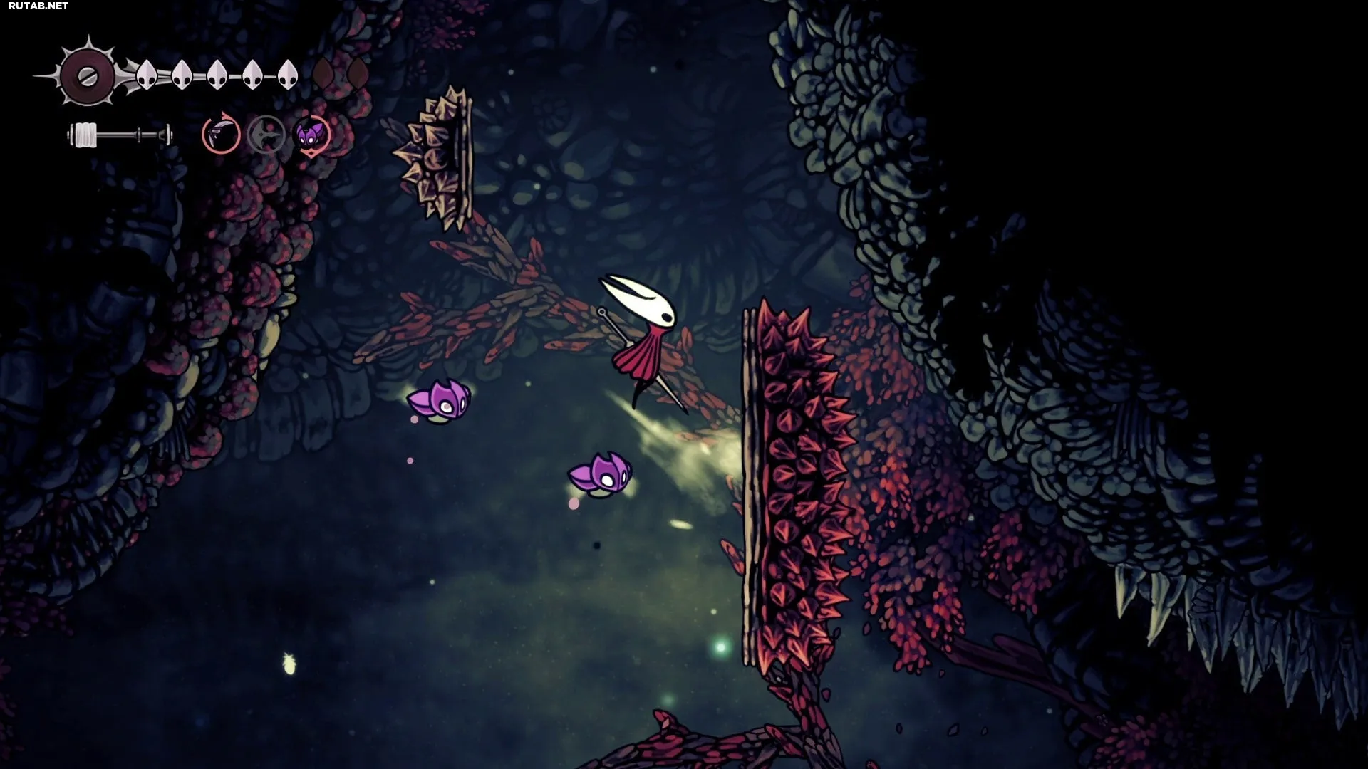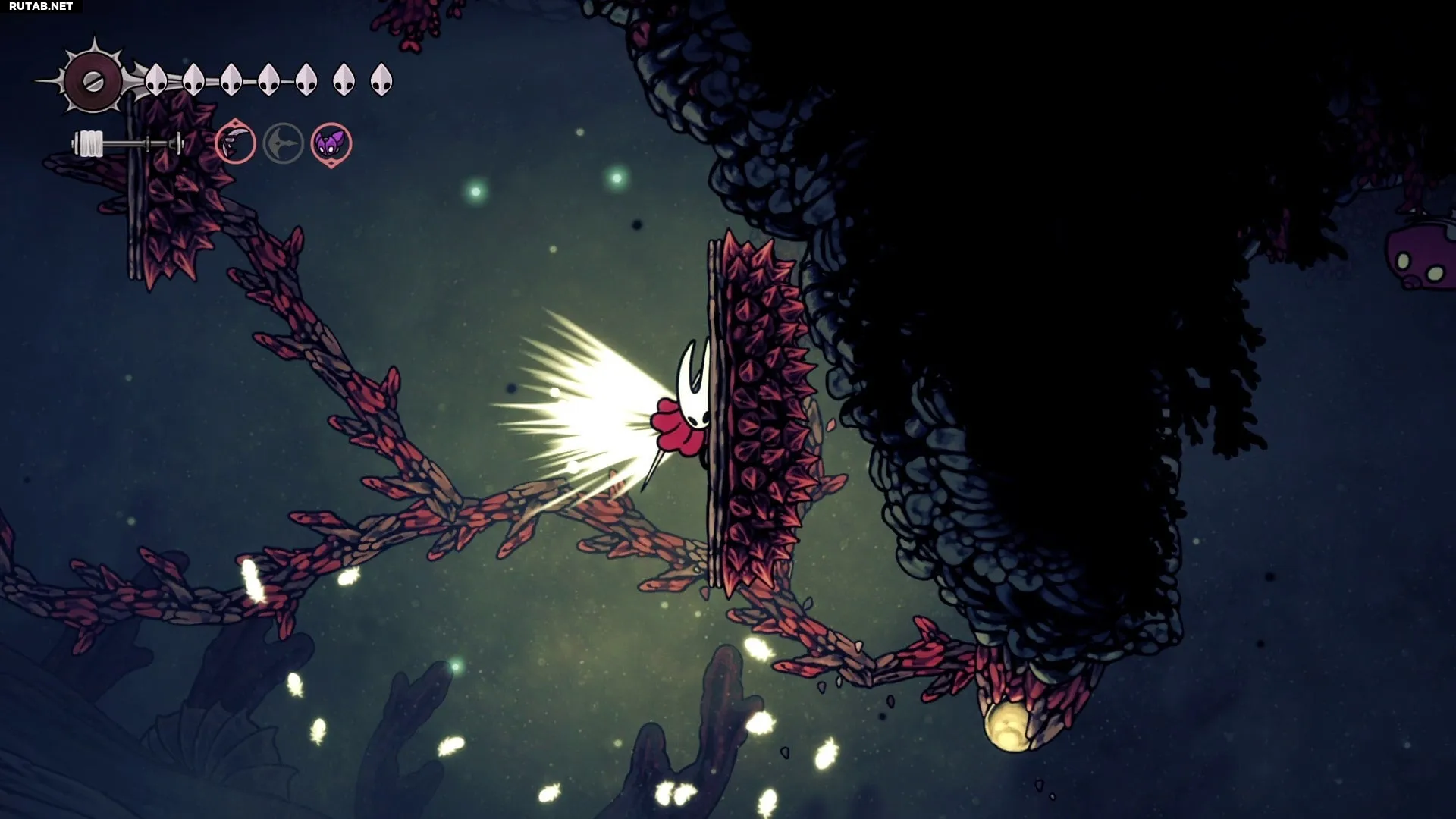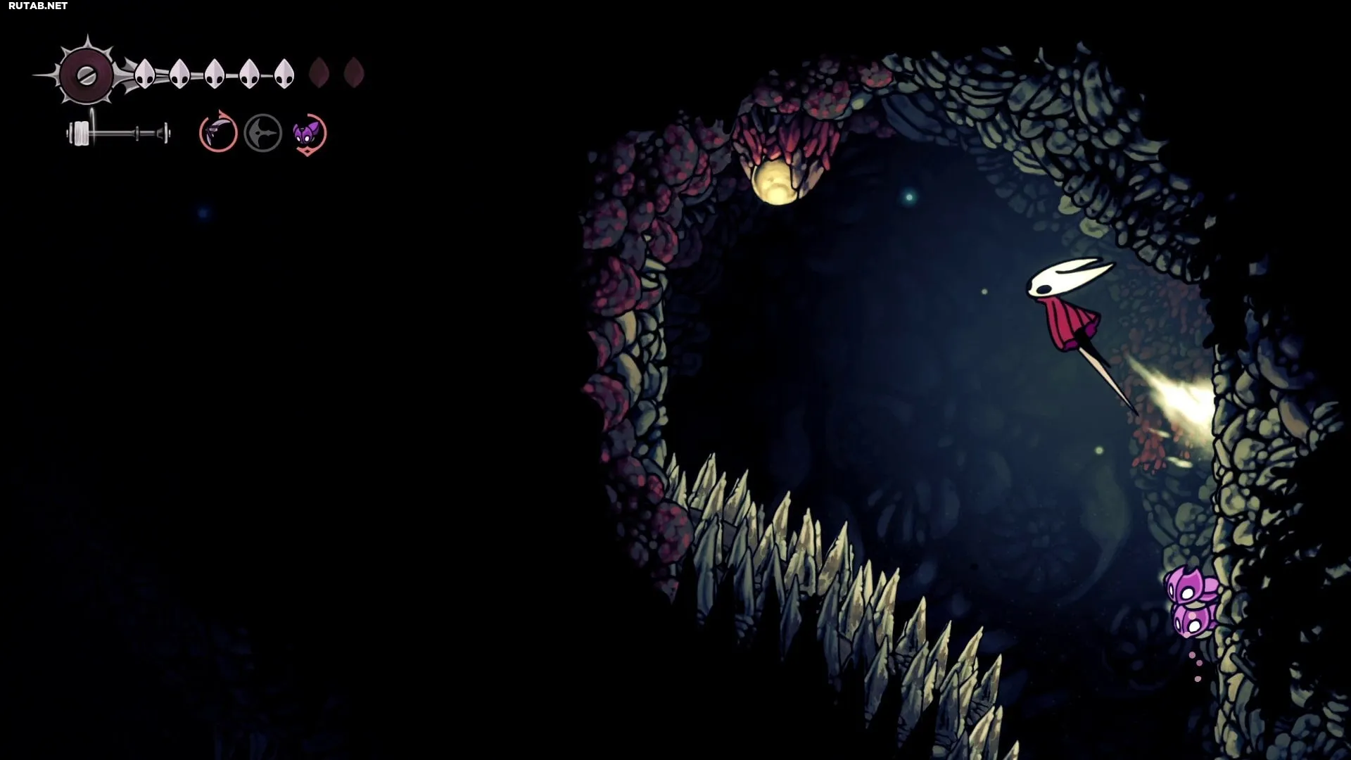 В следующей области быстро расправьтесь с Хоровым Фурмом. Затем разрушьте хрупкие барьеры на левой стене. После этого снова используйте Цепкую нить, чтобы преодолеть шипастый проход и добраться до стены, а затем аккуратно уничтожьте барьер под вами.
