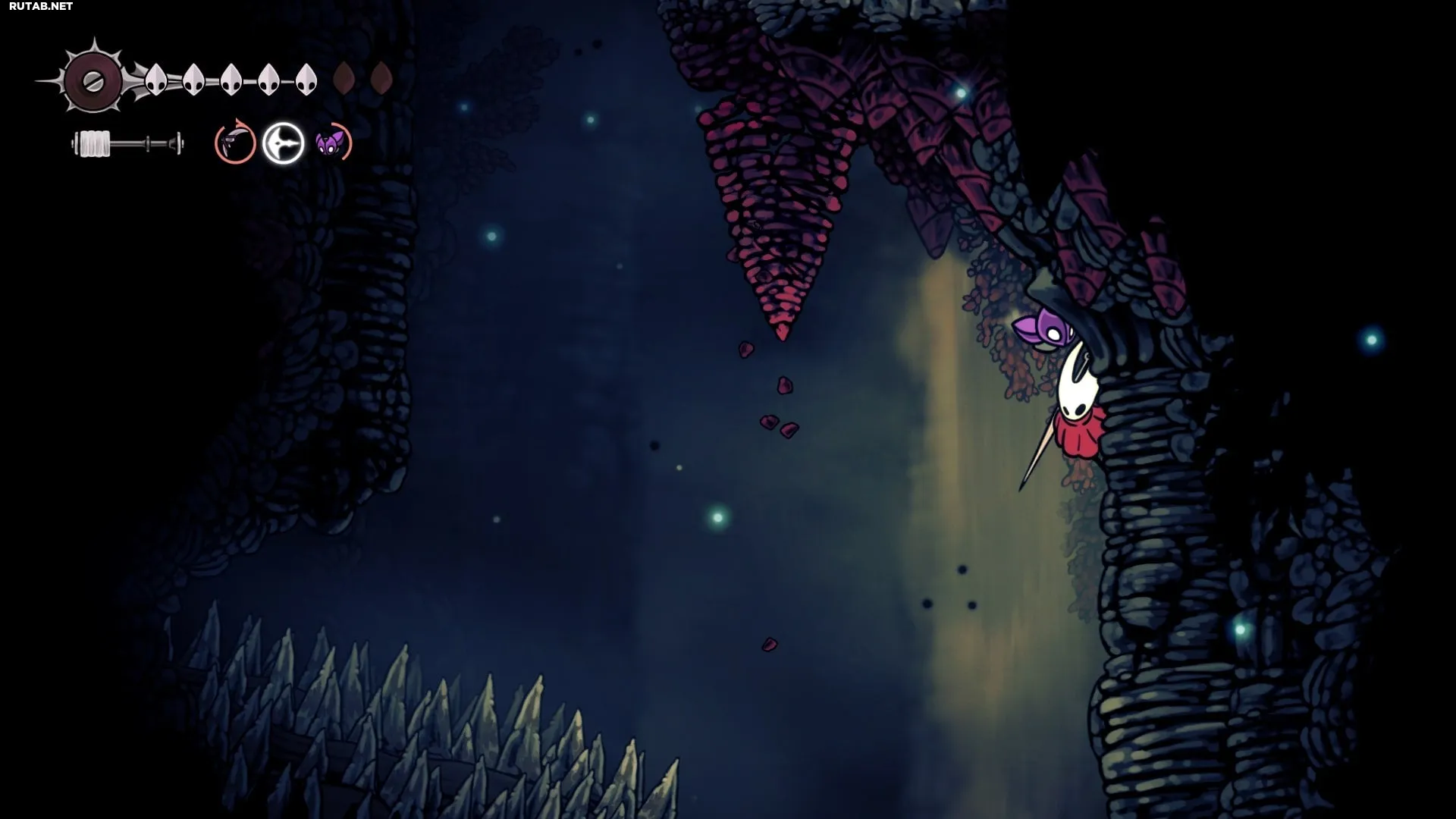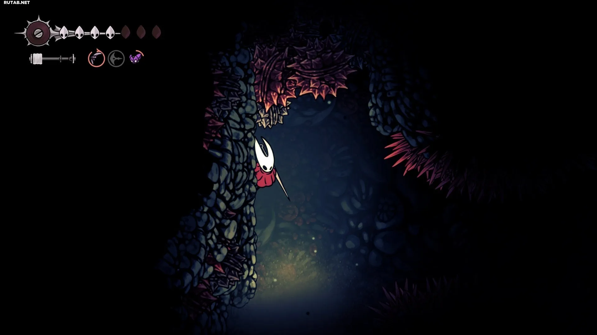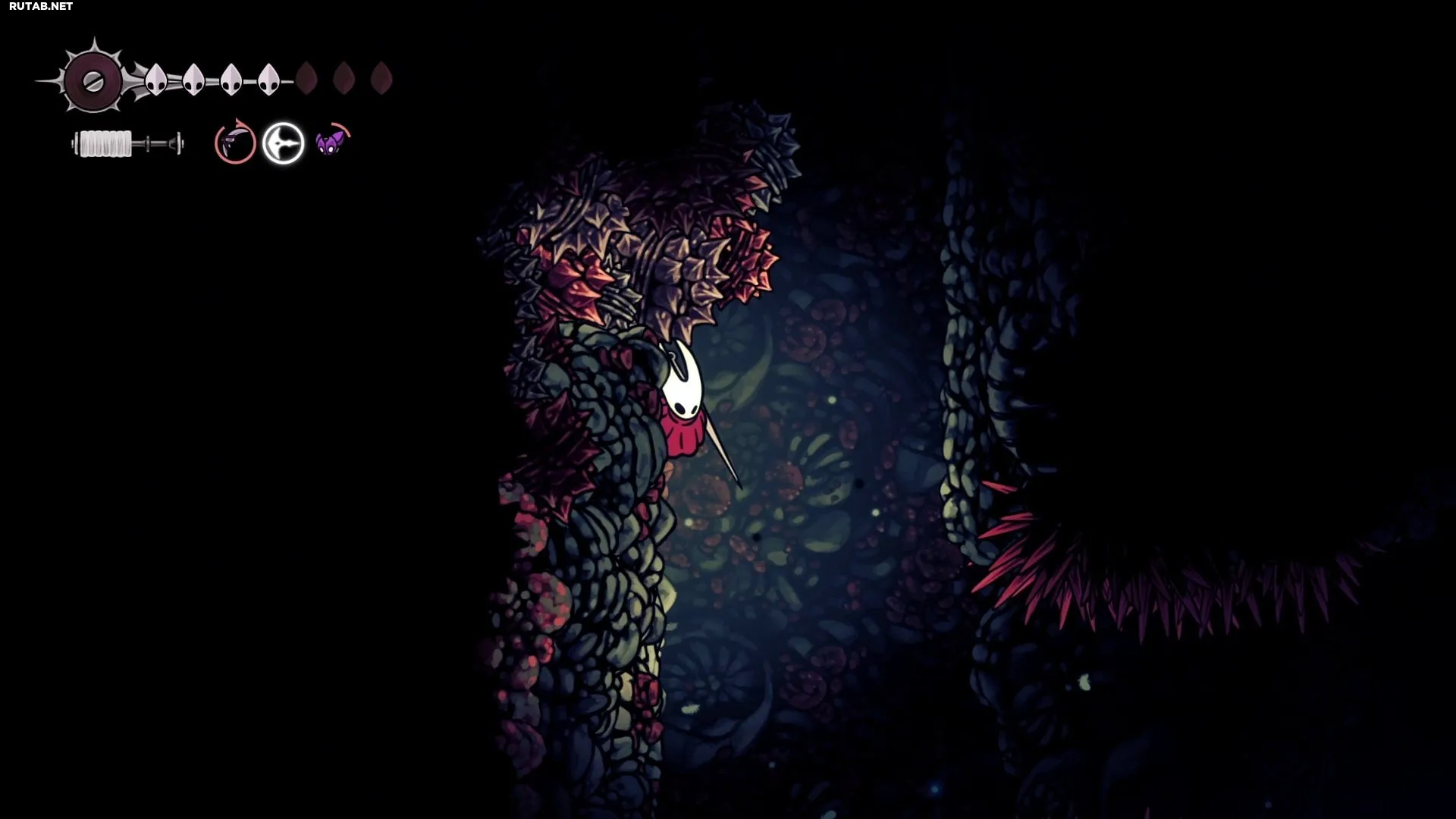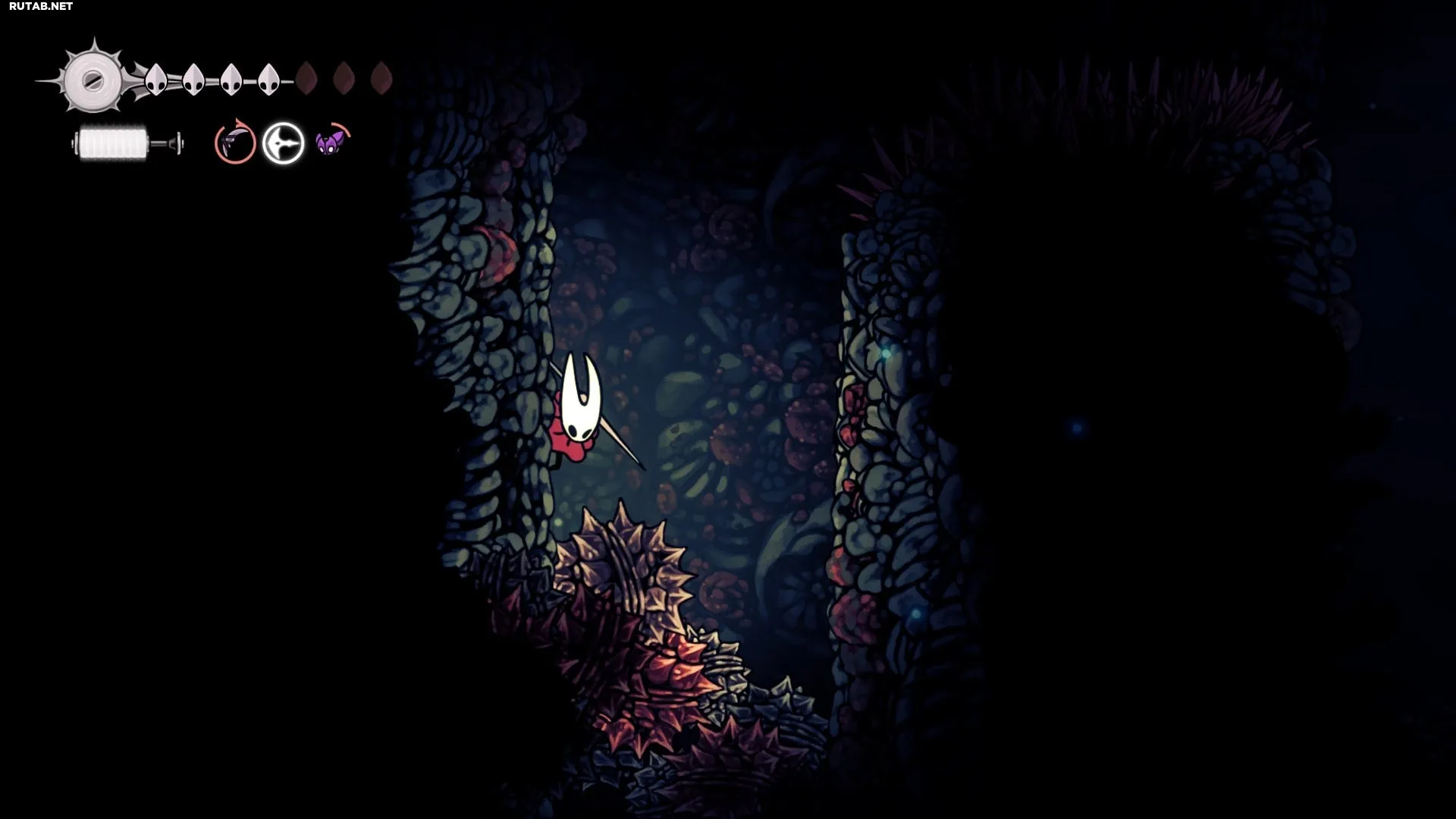 В следующей области быстро расправьтесь с Хоровым Фурмом. Затем разрушьте хрупкие барьеры на левой стене. После этого снова используйте Цепкую нить, чтобы преодолеть шипастый проход и добраться до стены, а затем аккуратно уничтожьте барьер под вами.
