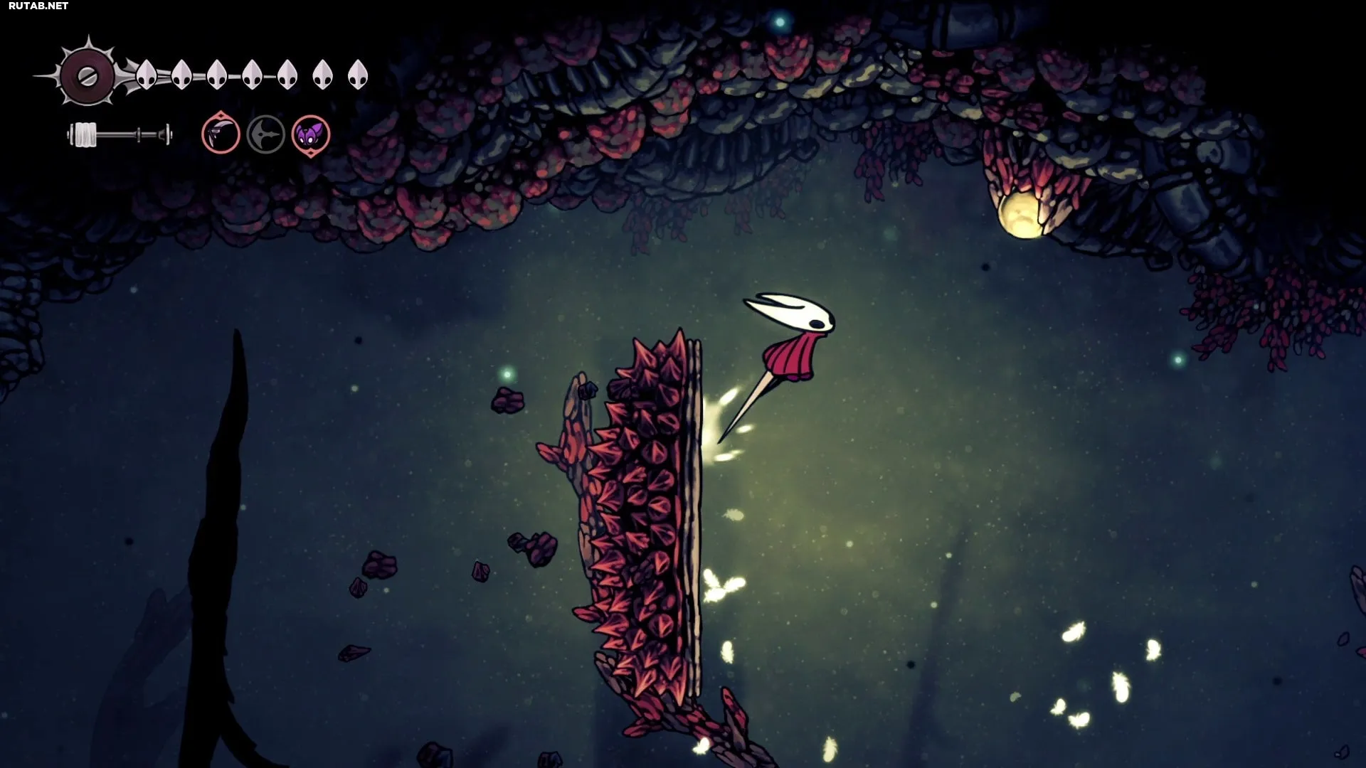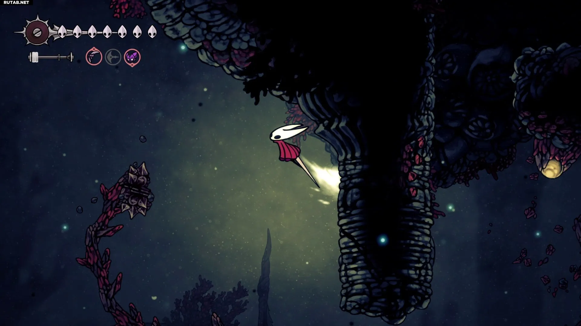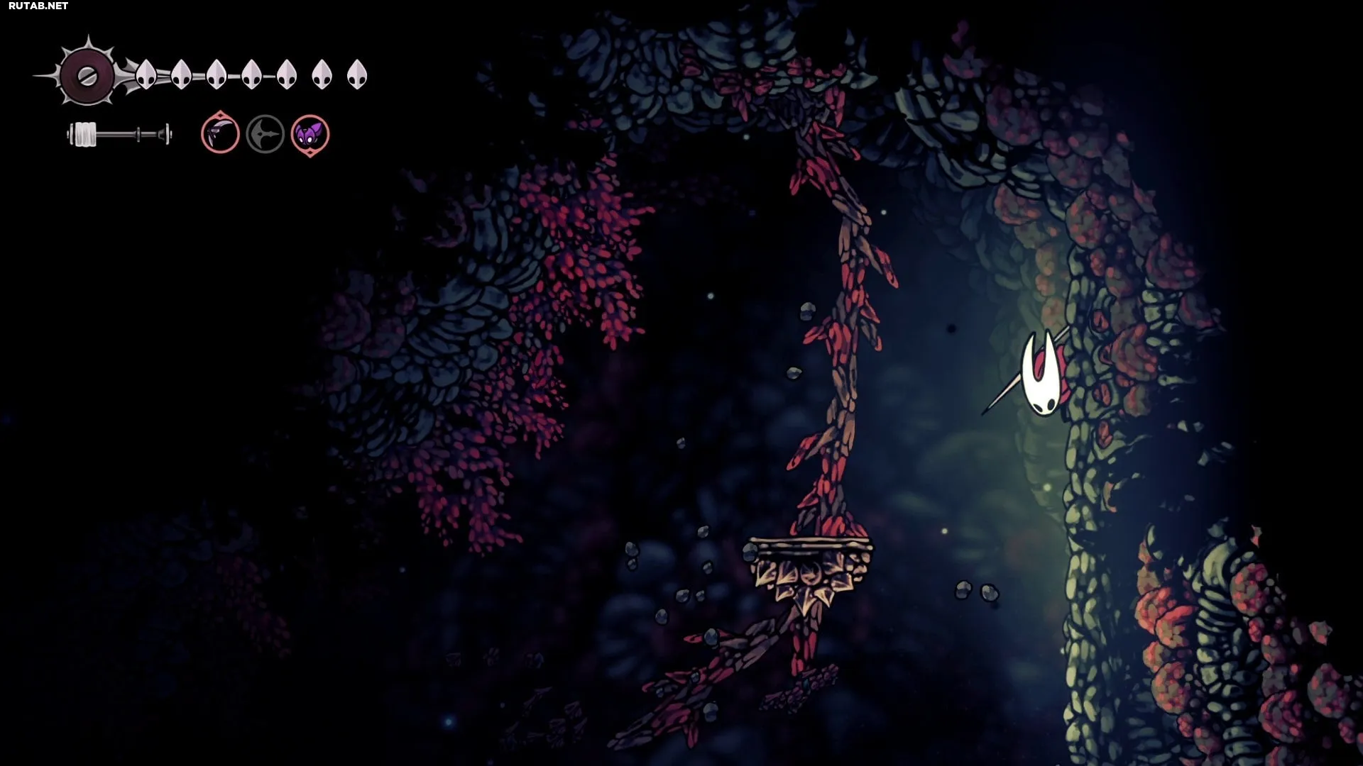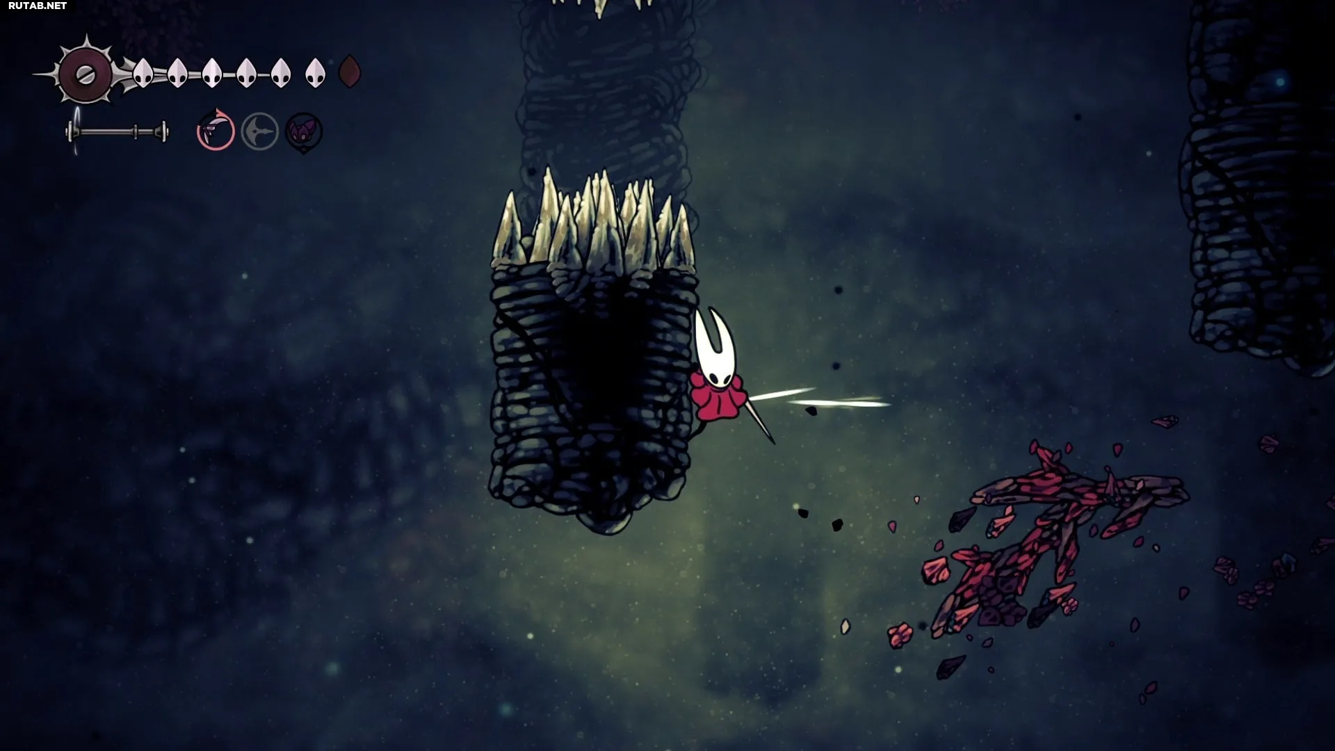 В следующей области быстро расправьтесь с Хоровым Фурмом. Затем разрушьте хрупкие барьеры на левой стене. После этого снова используйте Цепкую нить, чтобы преодолеть шипастый проход и добраться до стены, а затем аккуратно уничтожьте барьер под вами.