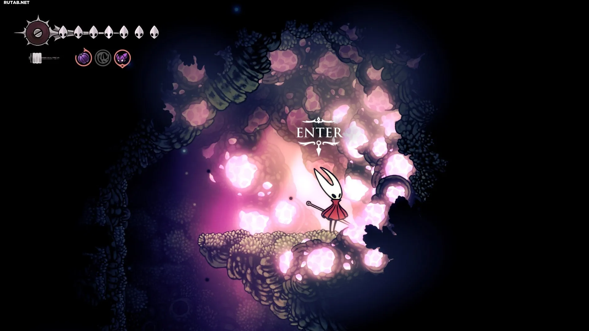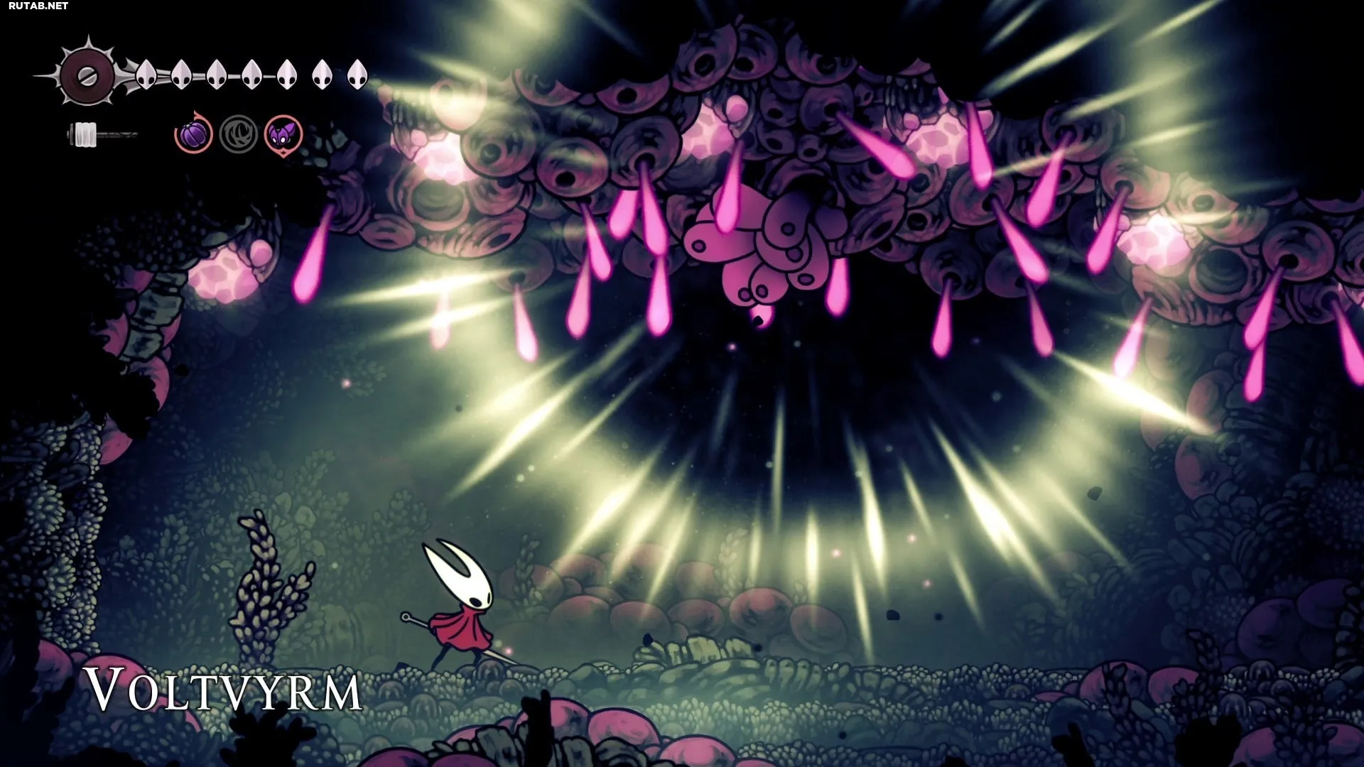 От места, где вы разрушили сталактит, войдите в комнату слева. Вам нужно будет использовать Рывок и двойной прыжок влево по этой комнате, остерегаясь песчаных червей на полу и врагов ракушечных мух вдоль пути. Очень скоро вы достигнете битвы с боссом Разъярённой ракушечной мухой.