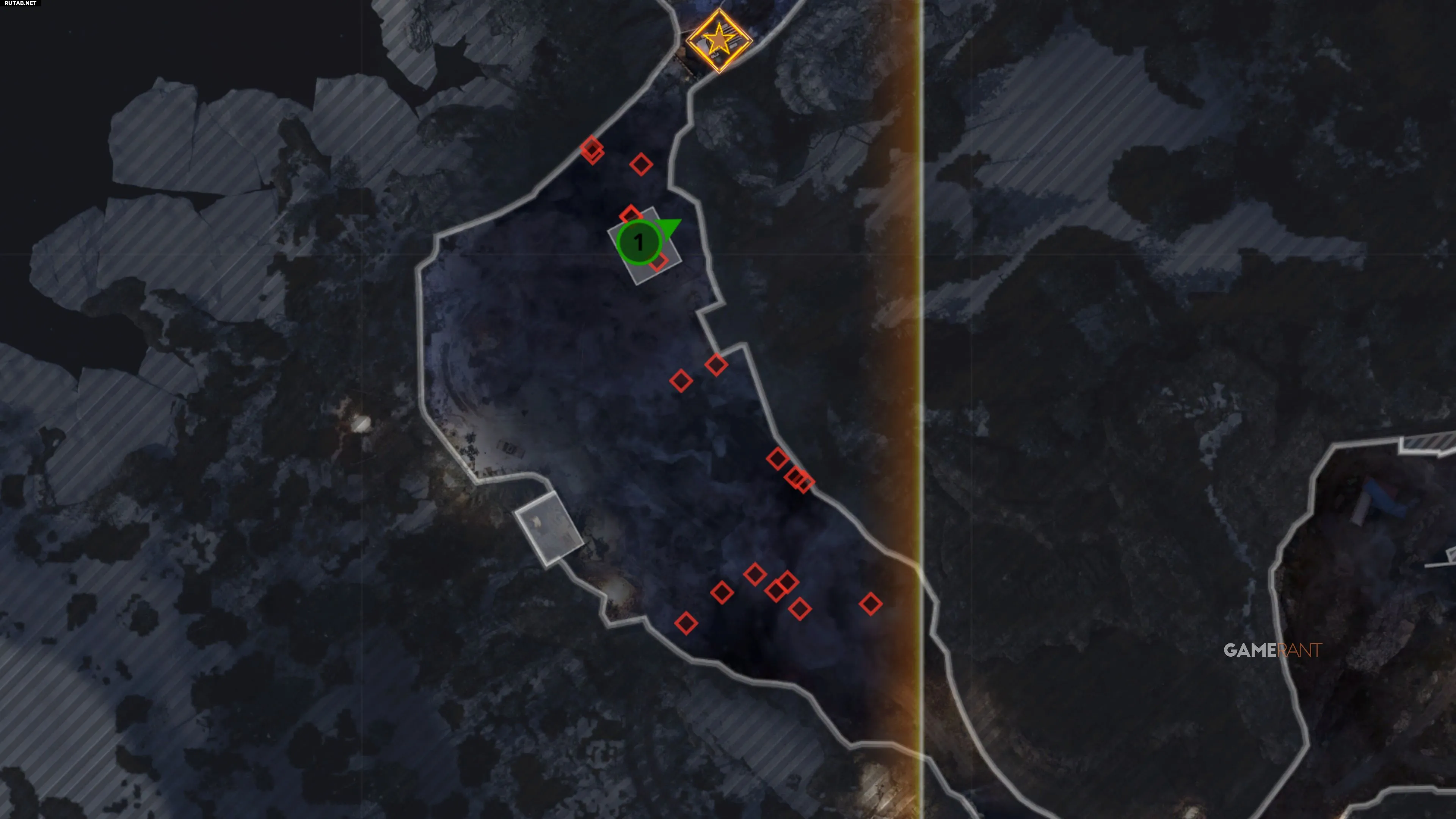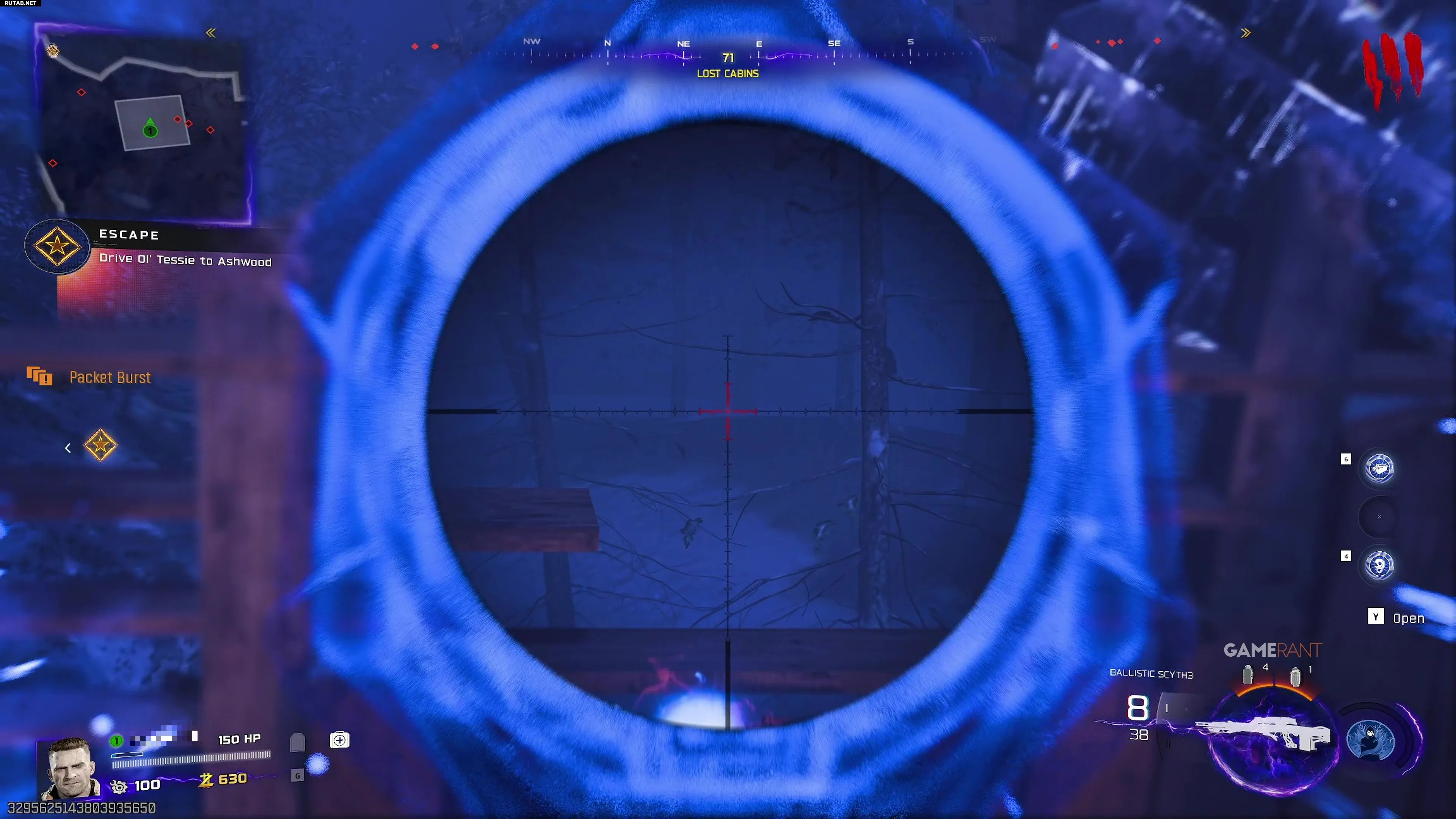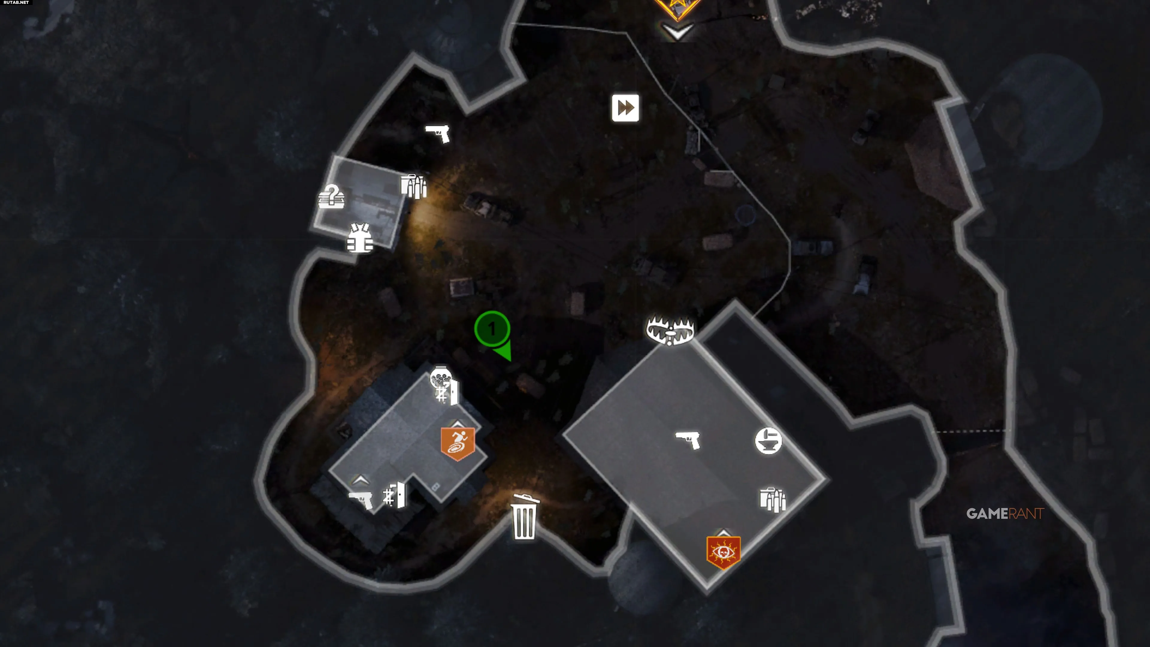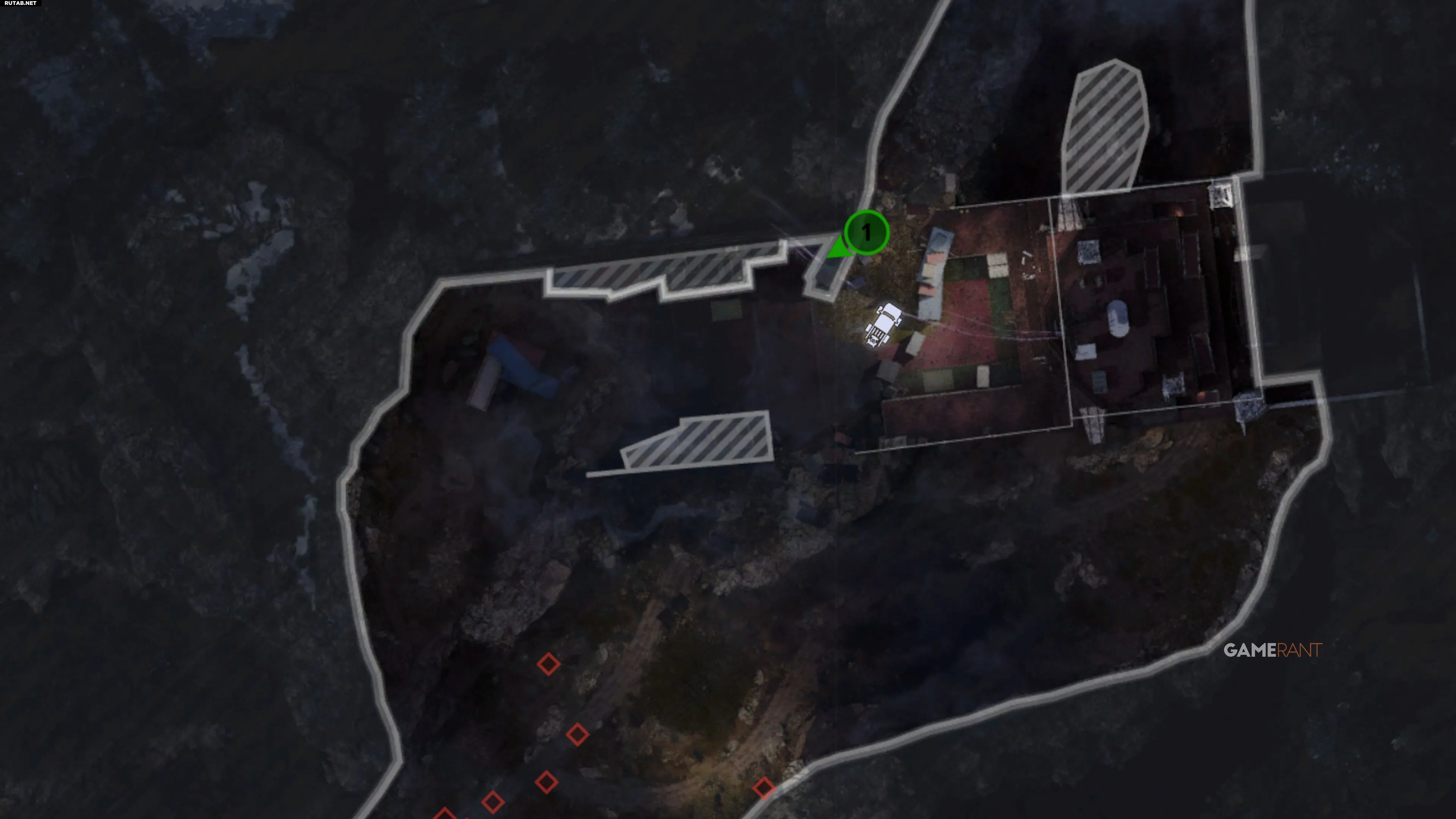 «Двойные очки» видны из Заброшенных хижин. В западной хижине поднимитесь наверх и посмотрите на 71° по компасу через дыру в крыше. Стреляйте в усиление вдали.
