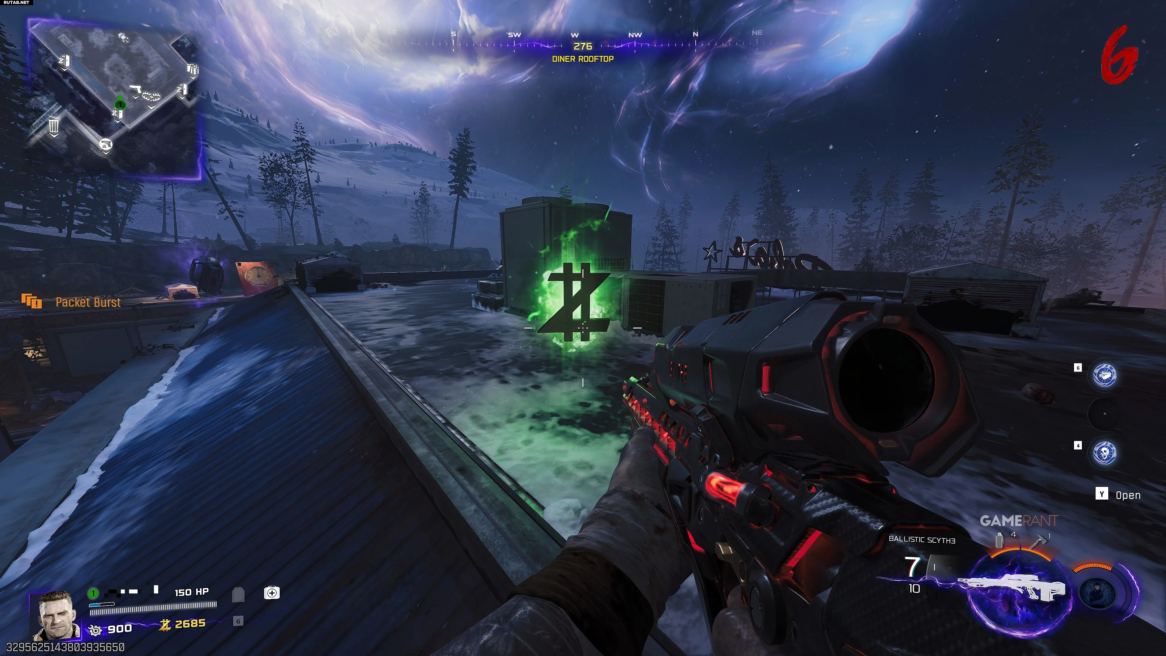 «Полная мощность» в Огненном рве на северо-востоке космодрома Заря. Посмотрите на северо-восток через сетчатый забор. Чтобы выстрелить, сместитесь вправо к проёму. Можно кинуть С4.