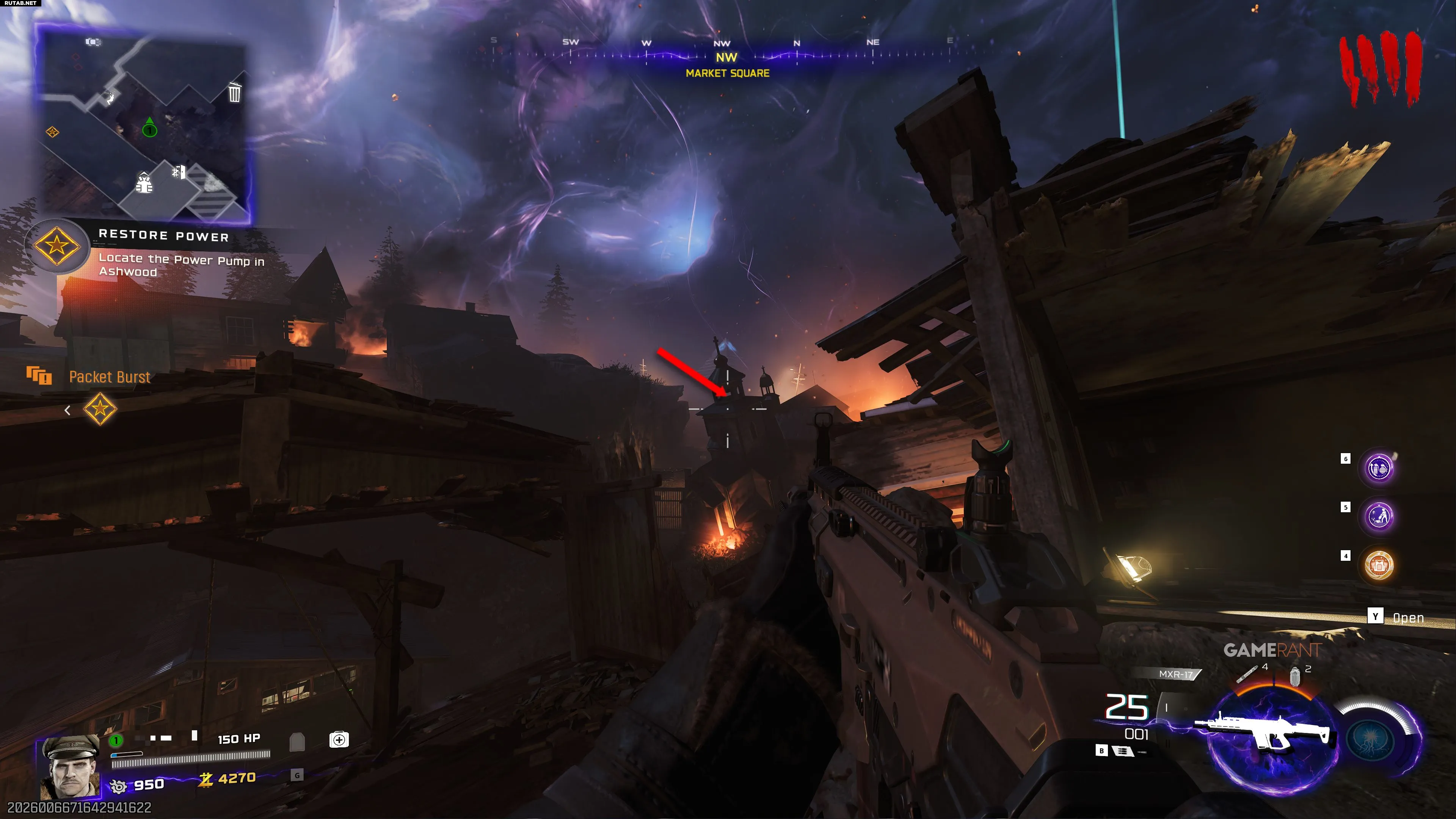 «Ядерный удар» в Эшвуде. Поднимитесь на лифте слева при входе в локацию. С восточной стороны посмотрите на церковь на севере. Усиление в шпиле колокольни. Стреляйте, чтобы активировать.