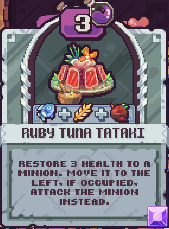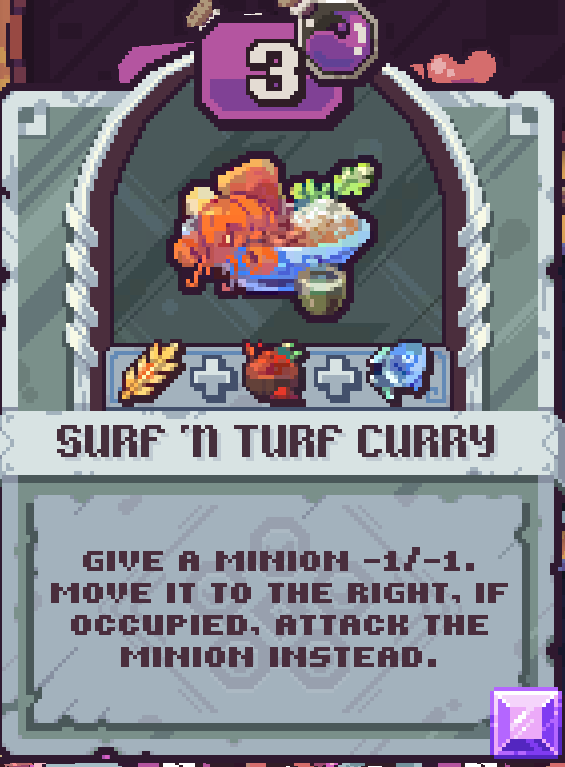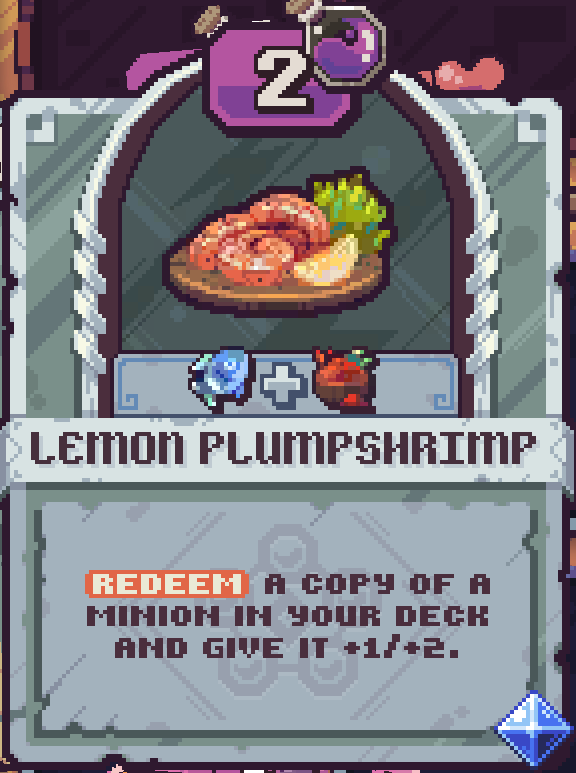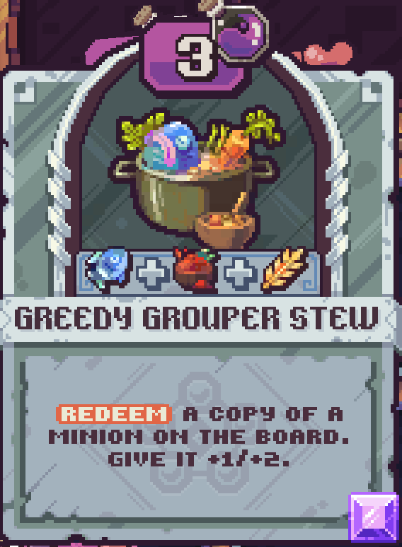 «Морепродукты → Пряности» позволяют вернуть копию миньона с бонусами +1/+2.