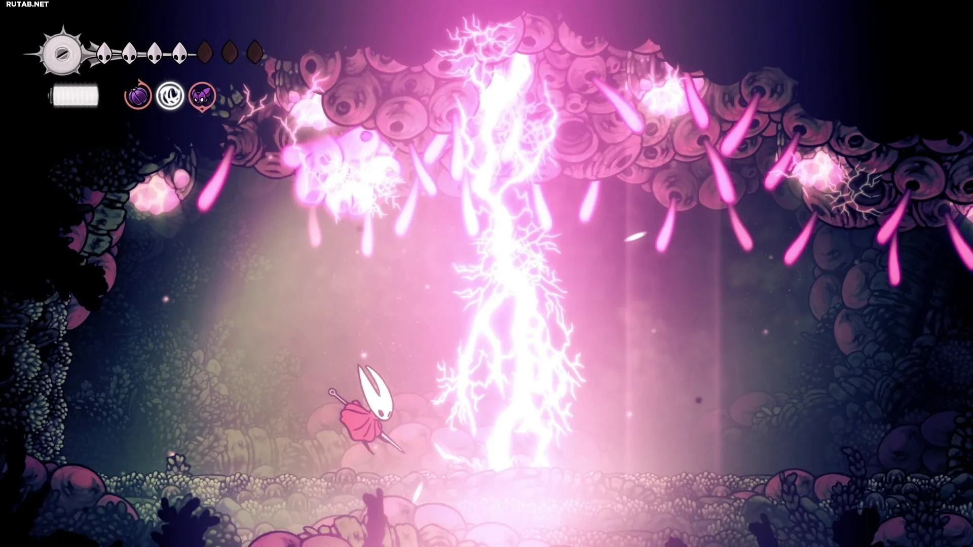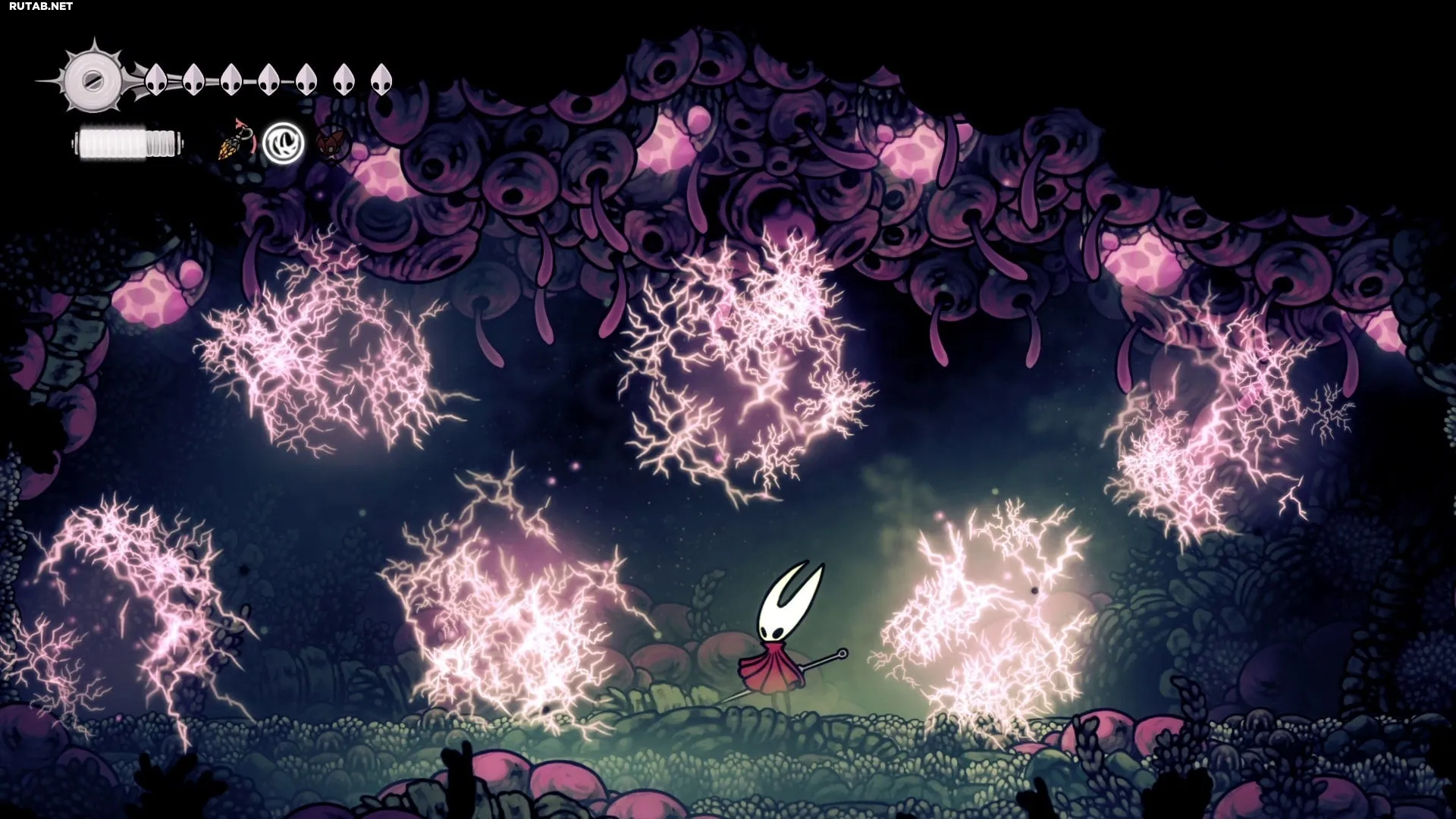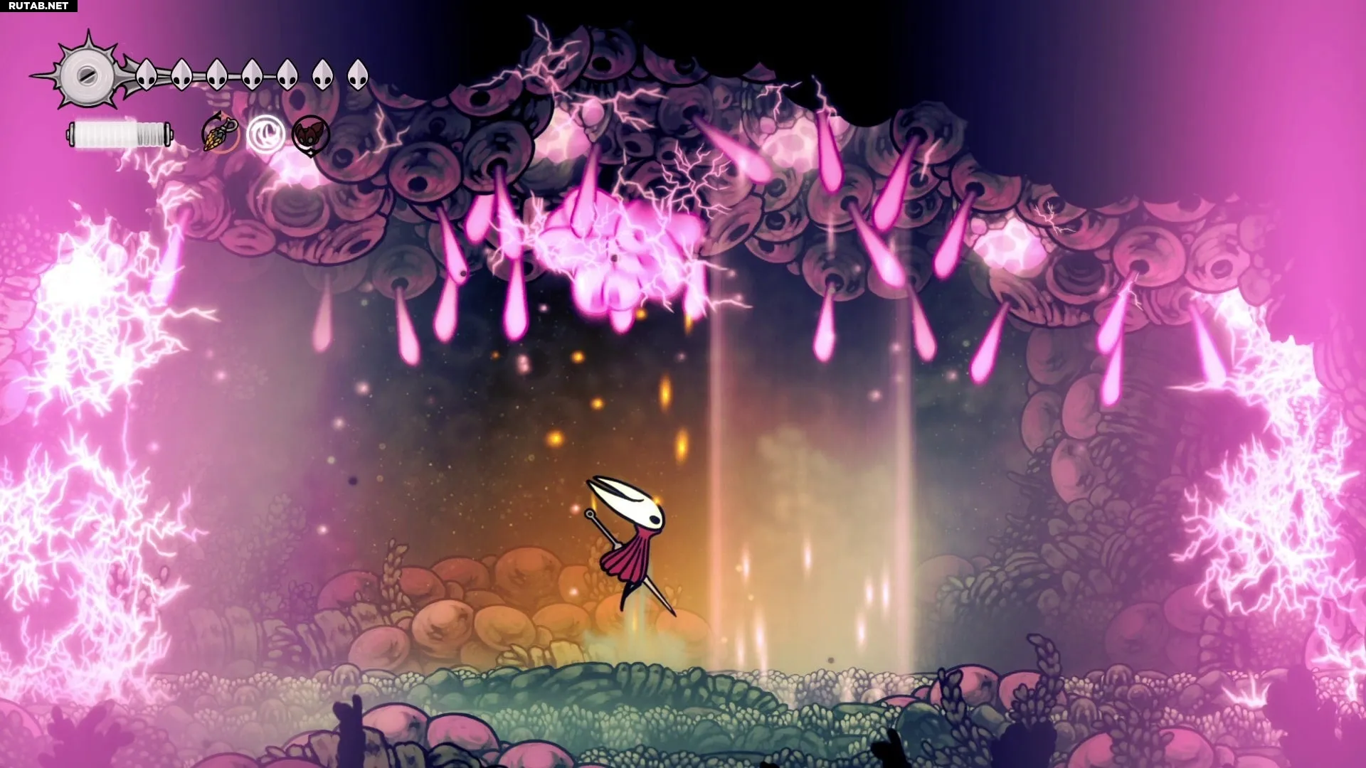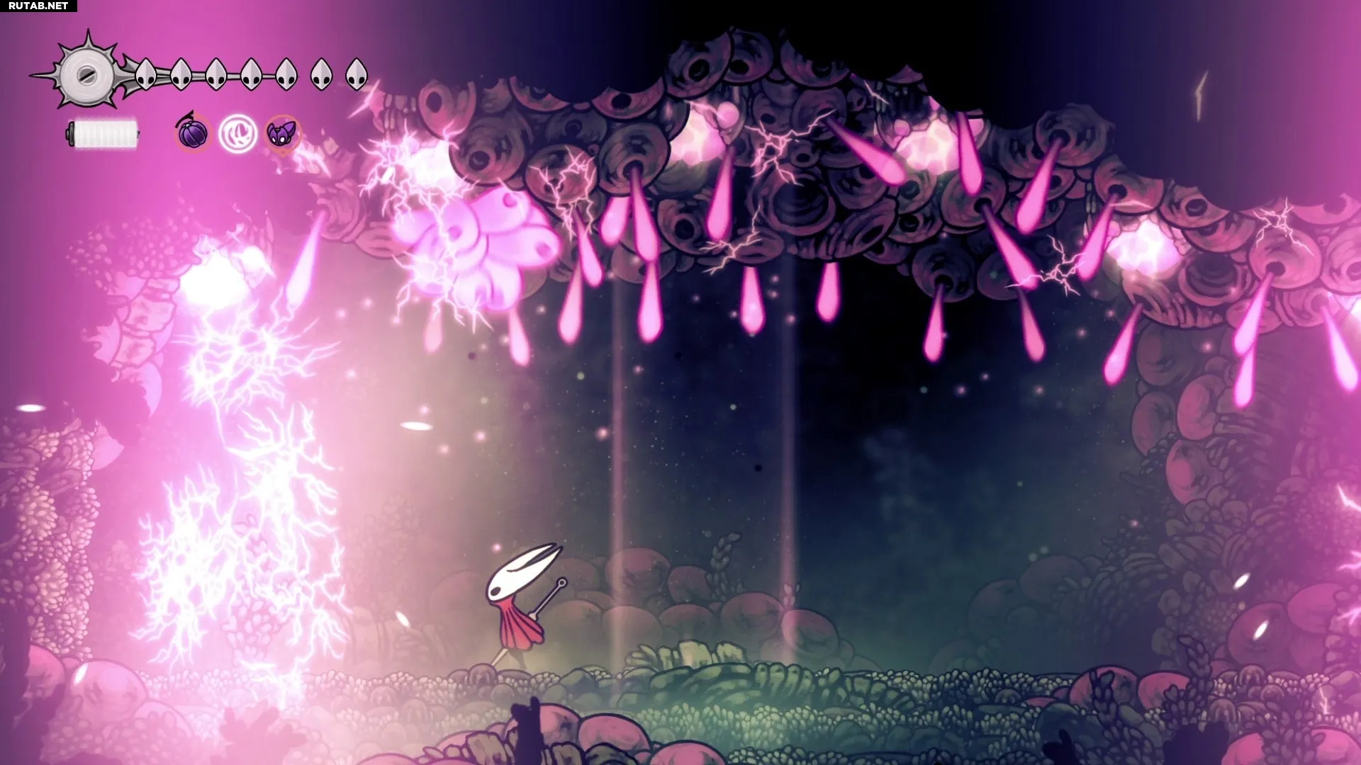 Как видите, вам нужно уворачиваться всего от двух атак, и у вас достаточно предупреждений для каждой. Между атаками вам нужно будет подпрыгивать и атаковать вверх, когда Червевольт появляется из потолка. Однако будьте осторожны при атаке: прыжок в электрифицированные сосуды над головой, которые окружают Червевольта, нанесёт Хорнет урон в две Маски. Единственное, от чего Хорнет не получит две Маски урона — это случайный прыжок в самого Червевольта, так что в этом отношении вы в относительной безопасности.