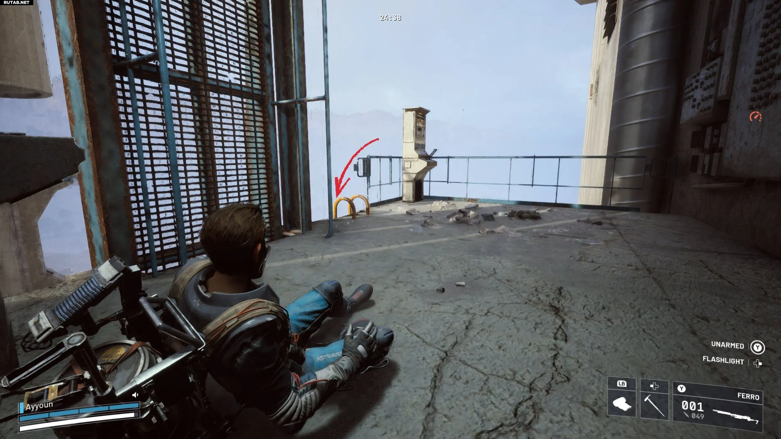 Уберите оружие в кобуру и разбегитесь по наклонной поверхности водосброса. Как только она начнет изгибаться вниз, вы автоматически начнете скольжение. Этого достаточно, чтобы проехать от вершины до основания.