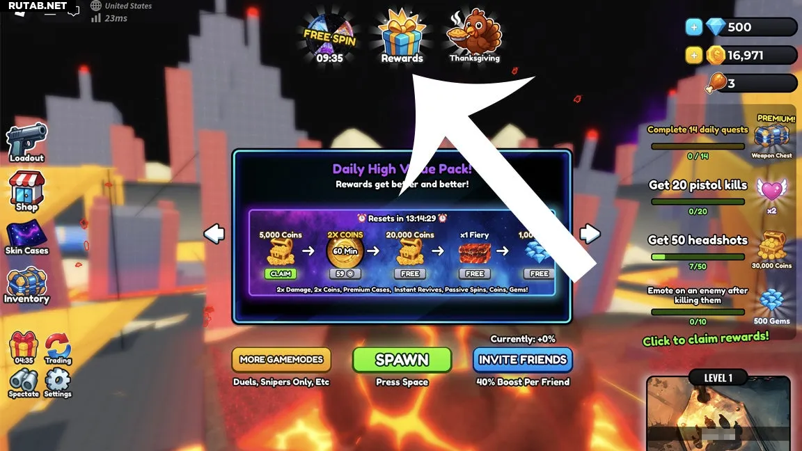 - Нажмите кнопку «Rewards» в верхней части экрана.