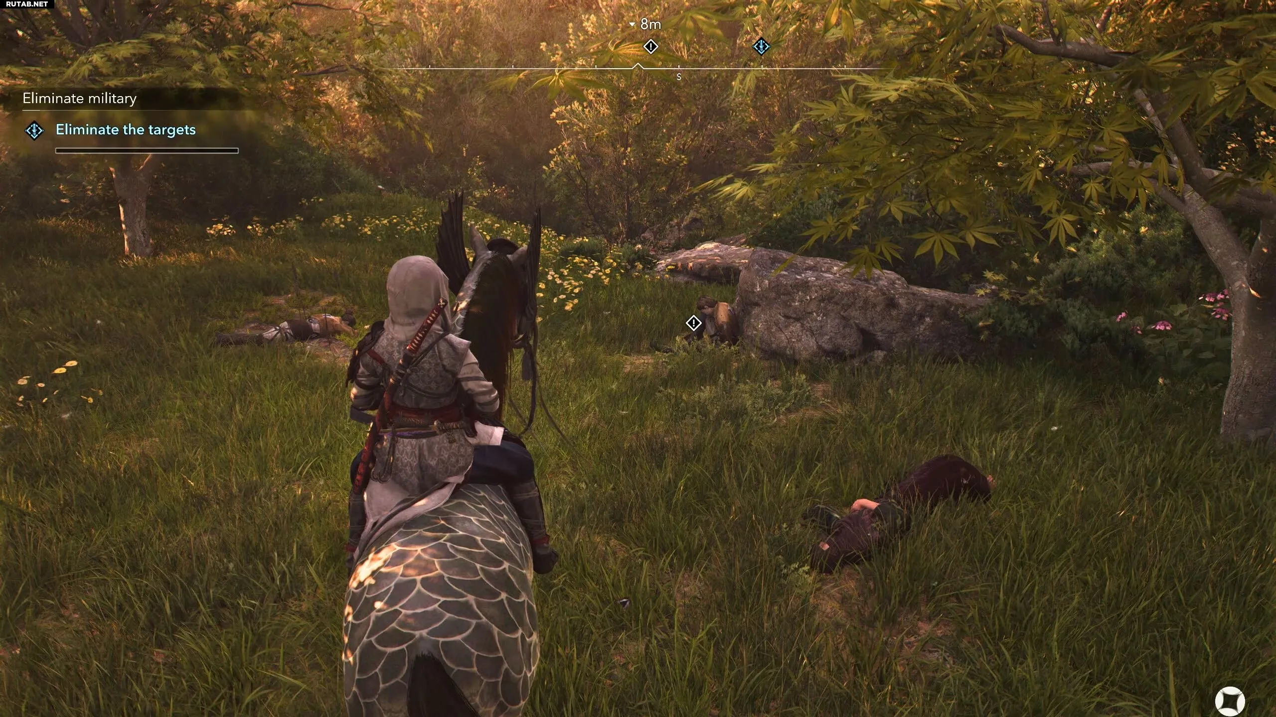 Быстро добраться до места начала квеста можно, быстро переместившись в замок Ханадзоно. После загрузки спуститесь вниз и направляйтесь к маркеру задания, где вы найдете разбросанные тела павших солдат Разведкорпуса из AOT.