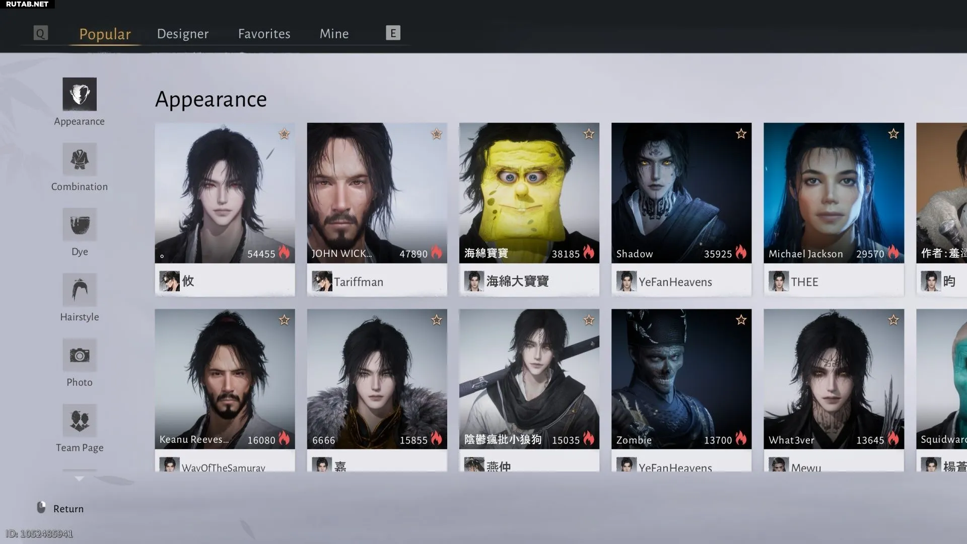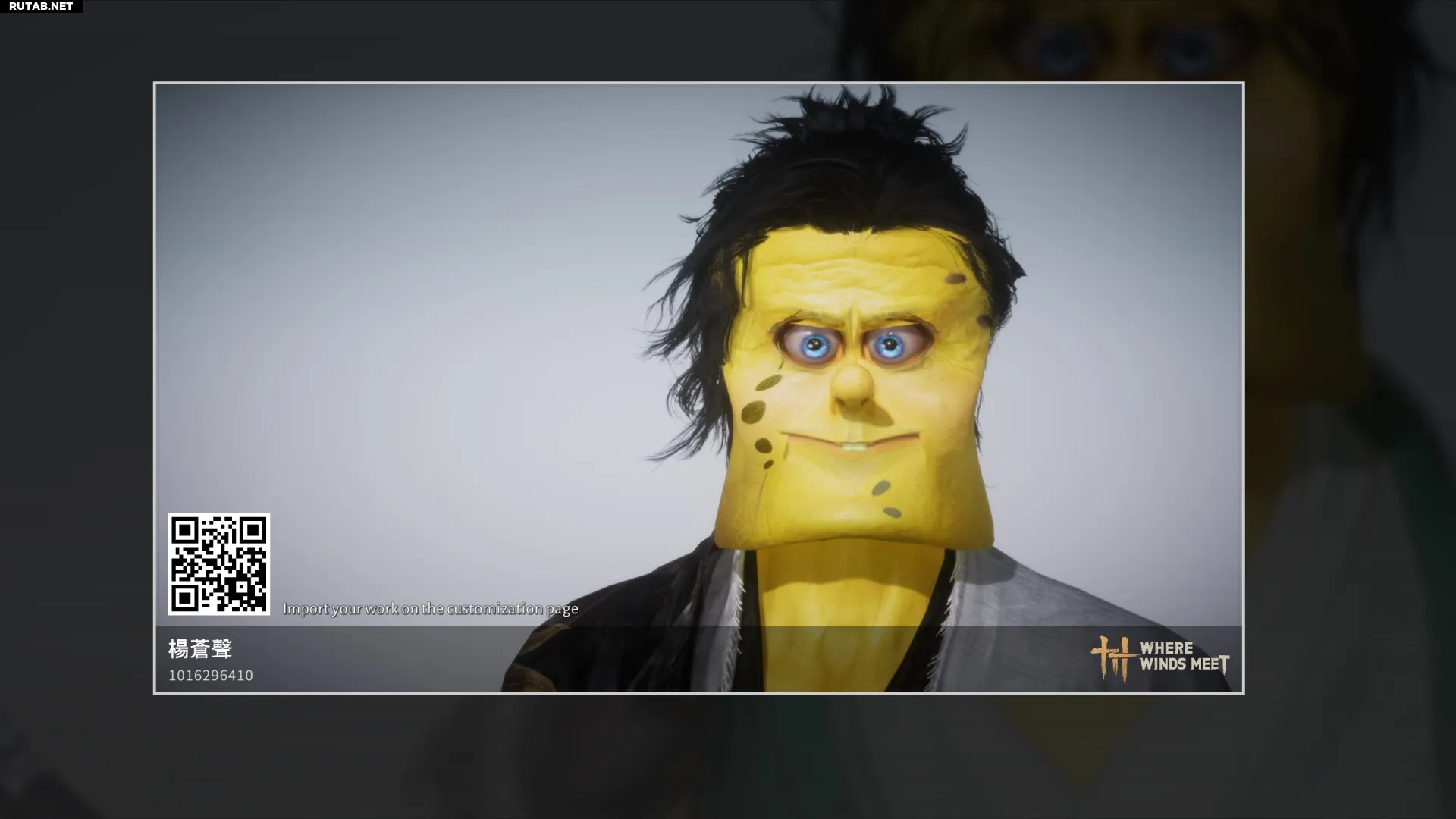 Созданный пользователем 海綿大寶寶, этот дизайн позволяет играть за пугающе реалистичную версию классического мультяшного персонажа. Это отличный пример того, насколько детализирован редактор персонажей в Where Winds Meet. Создатель каким-то образом смог придать лицу квадратную форму и даже воспроизвёл вытянутый нос Губки Боба.