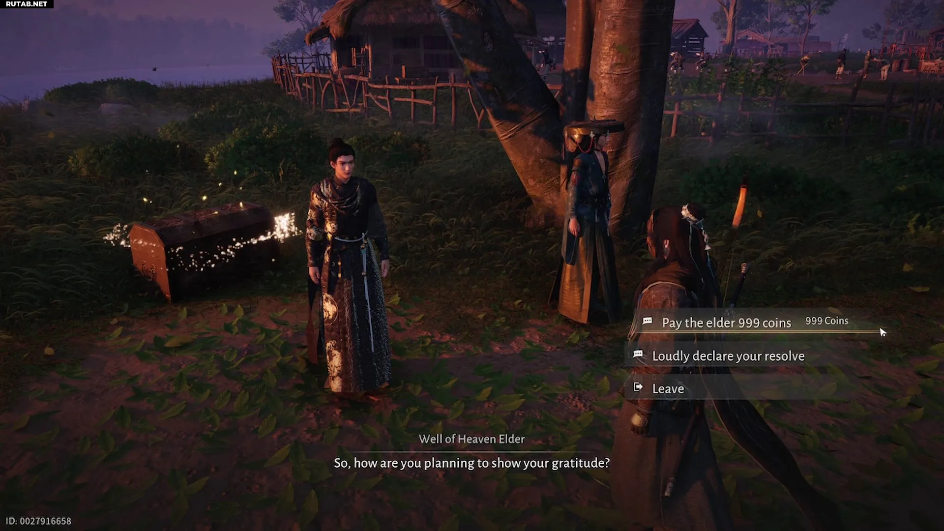- Начните диалог и выберите опцию заплатить старейшине 999 монет.