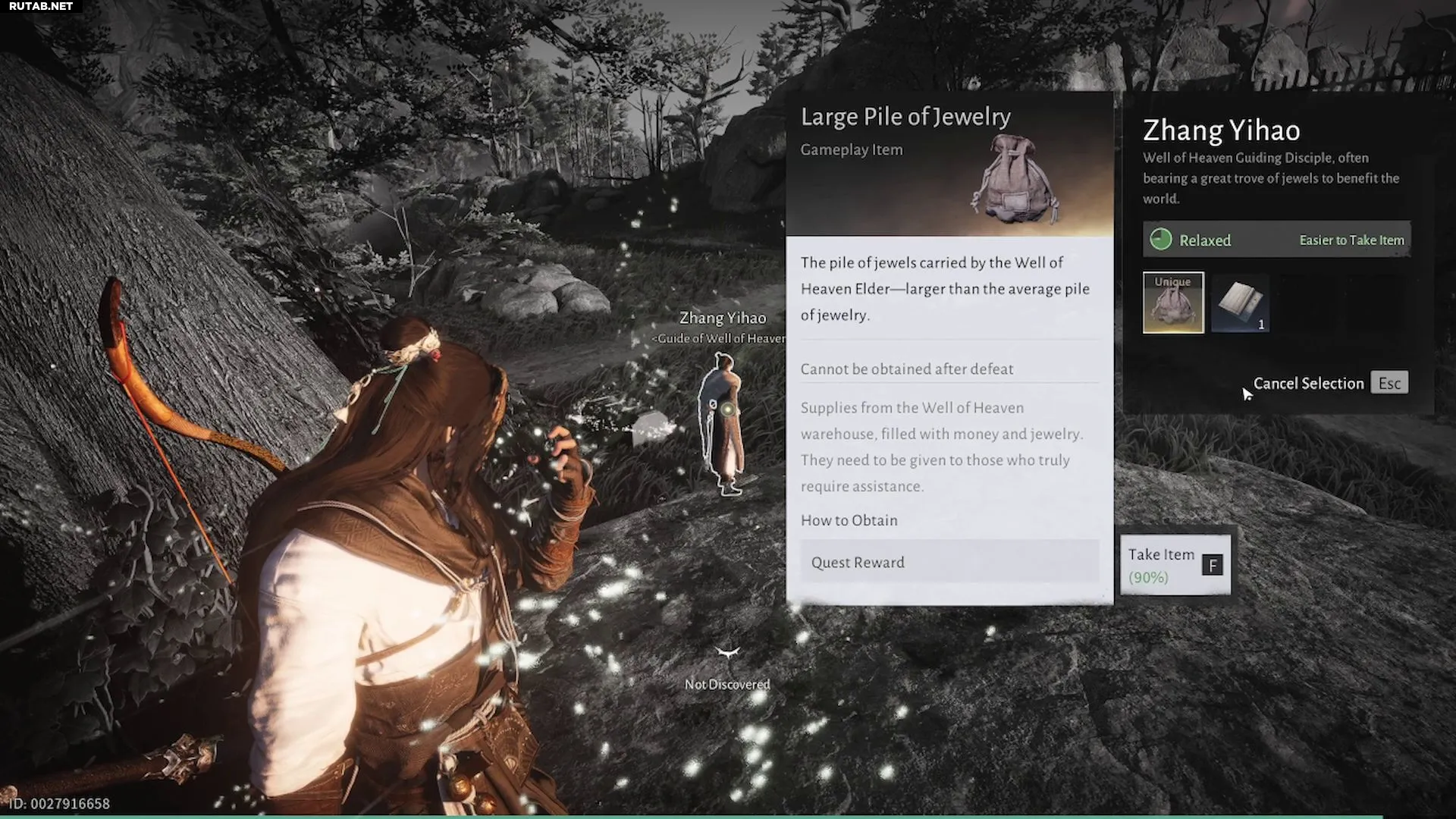 - Следуйте за маркером задания, чтобы добраться до «друга» старейшины Чжан Ихао, который стоит у сундука на ближайшей горе.