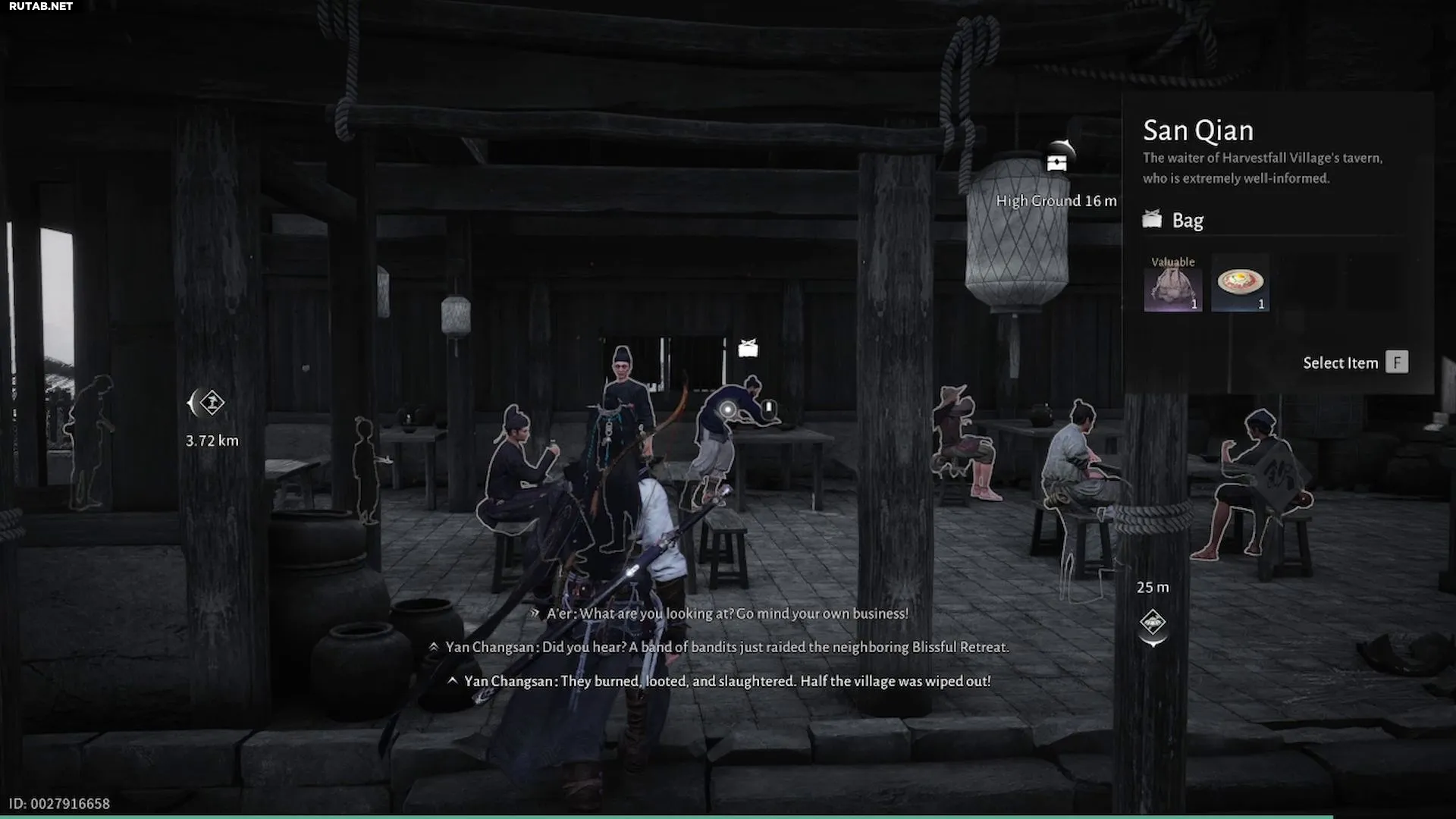 - Найдите в Деревне урожайной осени официанта по имени Сань Цянь и расспросите его о вербовщиках секты Колодец небес.