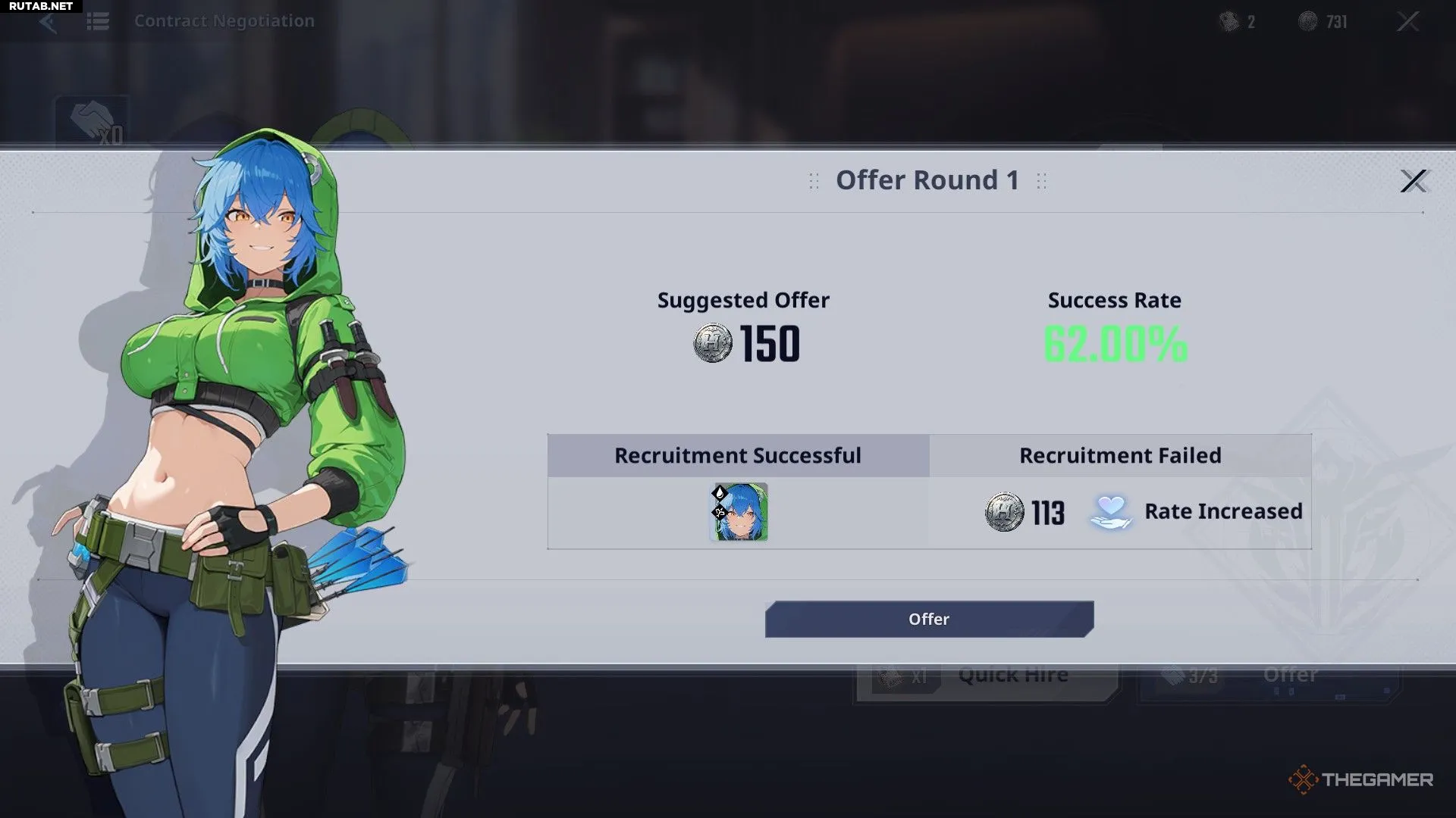 Вы можете регулировать количество предлагаемых монет в нижней части экрана. У вас будет три попытки сделать предложение выбранному персонажу. Вероятность принятия отображается в виде процента успеха над полем изменения предложения.