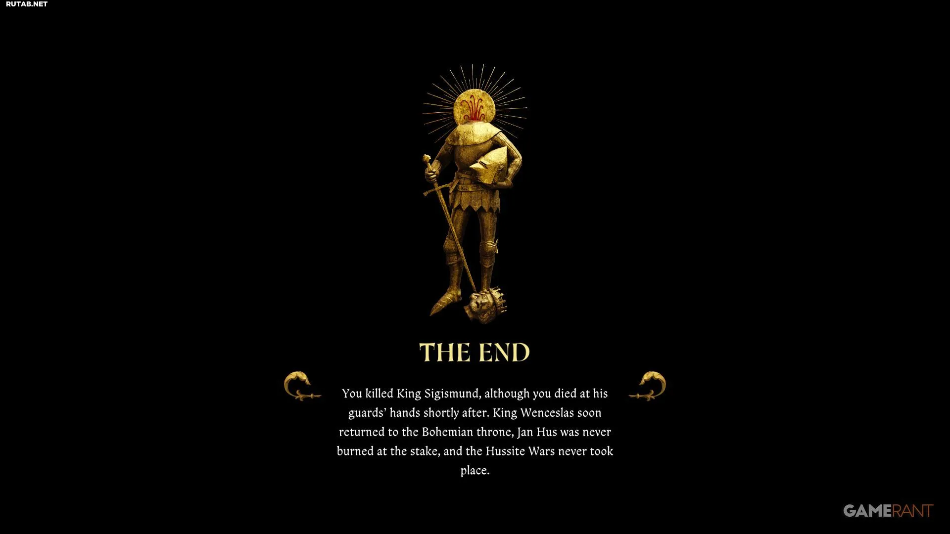 КОНЕЦ... Вы убили короля Сигизмунда, хотя вскоре после этого пали от рук его стражников. Король Вацлав вскоре вернулся на богемский престол, Яна Гуса так и не сожгли на костре, а Гуситские войны никогда не начинались.