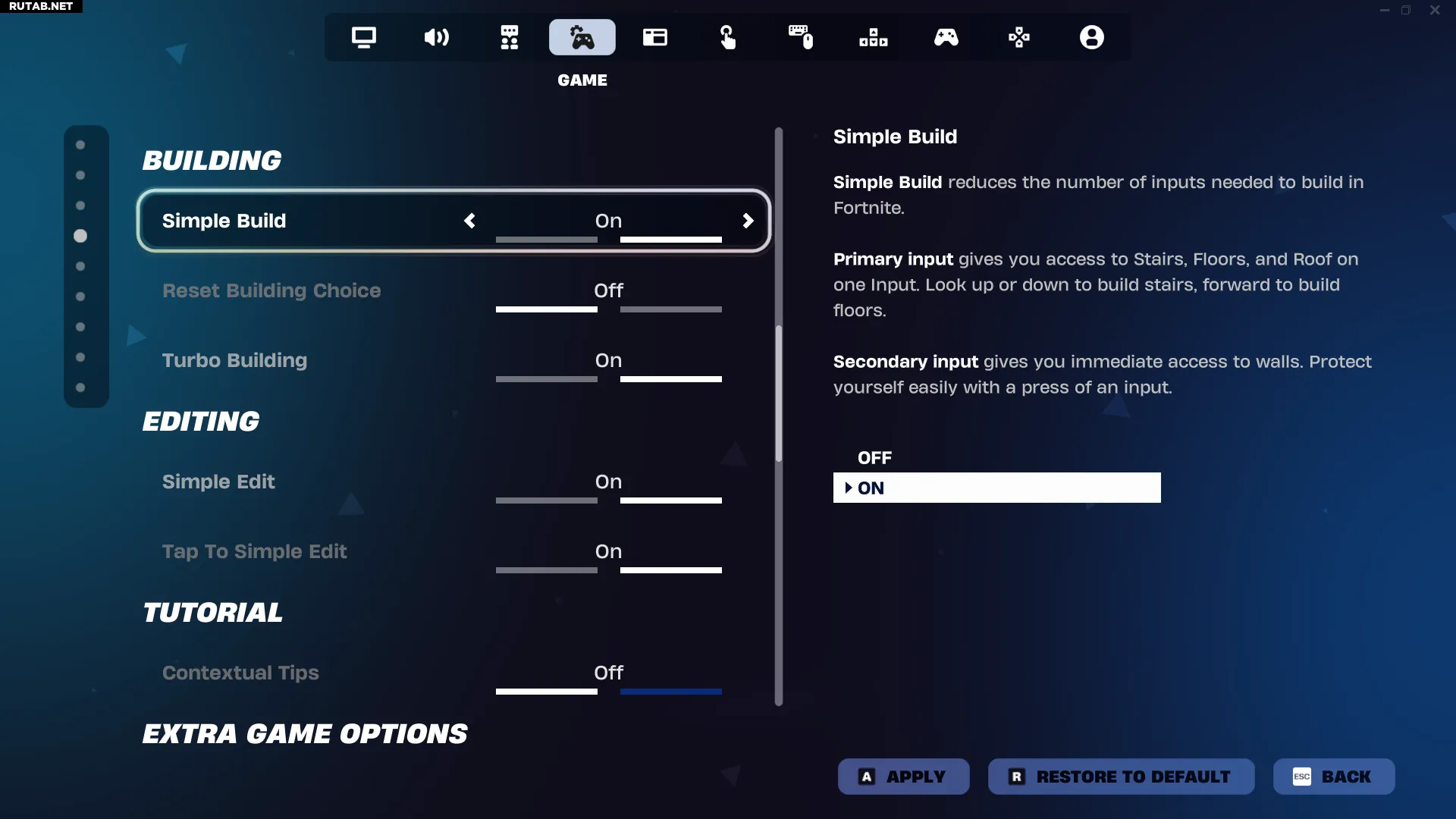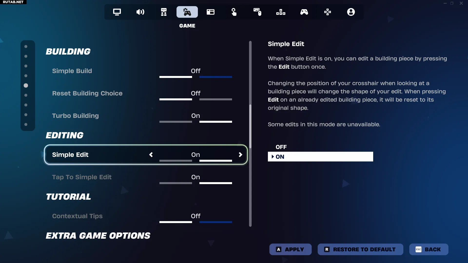 Как отключить простой режим строительства и редактирования в Fortnite
