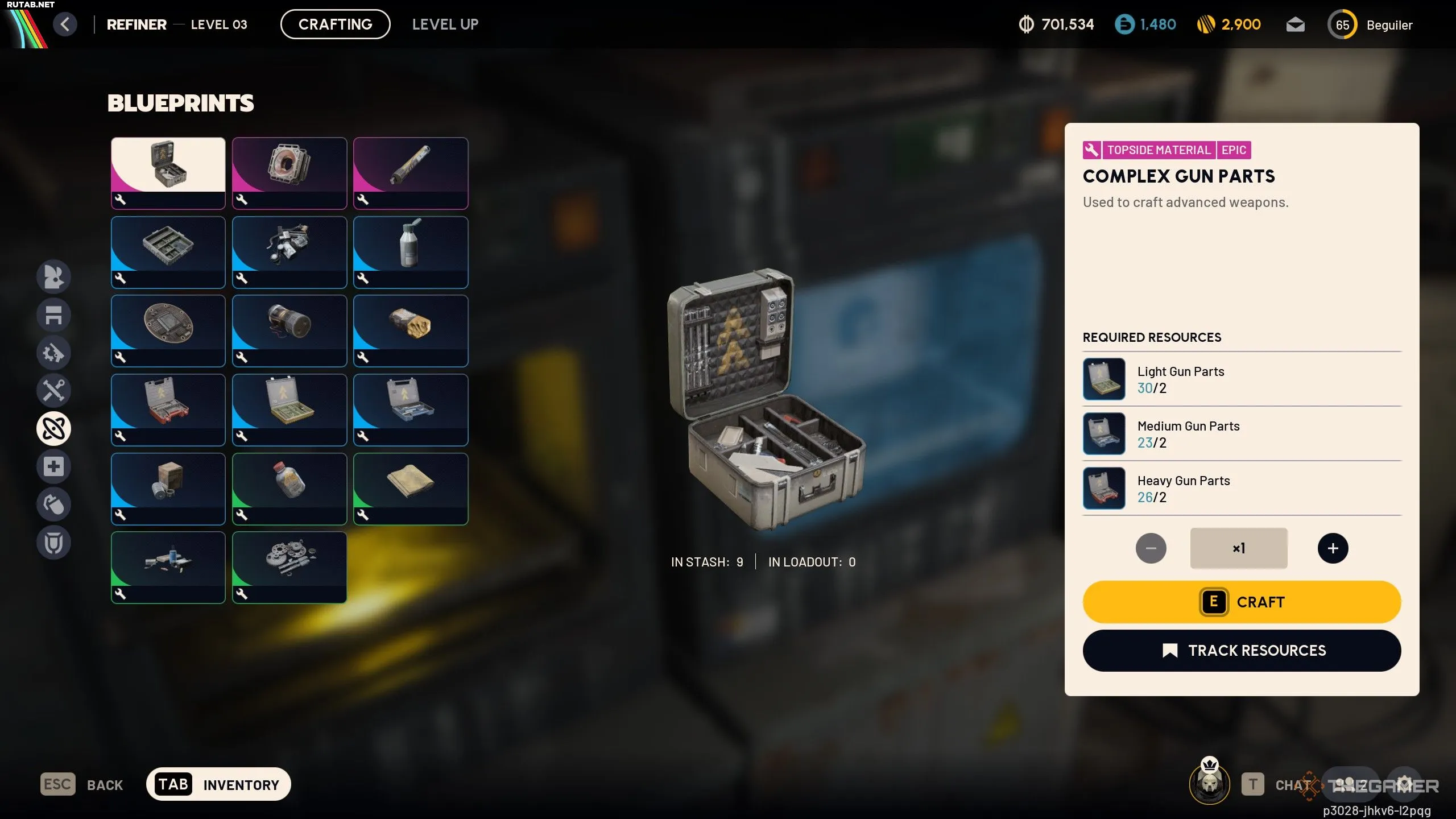 Кроме того, Сложные детали оружия можно создать, если вы найдёте соответствующий чертёж. Крафт происходит на улучшителе 3-го уровня и требует 2 Лёгких, 2 Средних и 2 Тяжёлых деталей оружия для создания одной Сложной детали. Цена довольно высока, если у вас нет солидного запаса материалов.