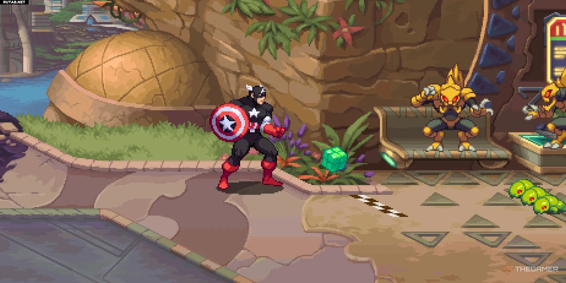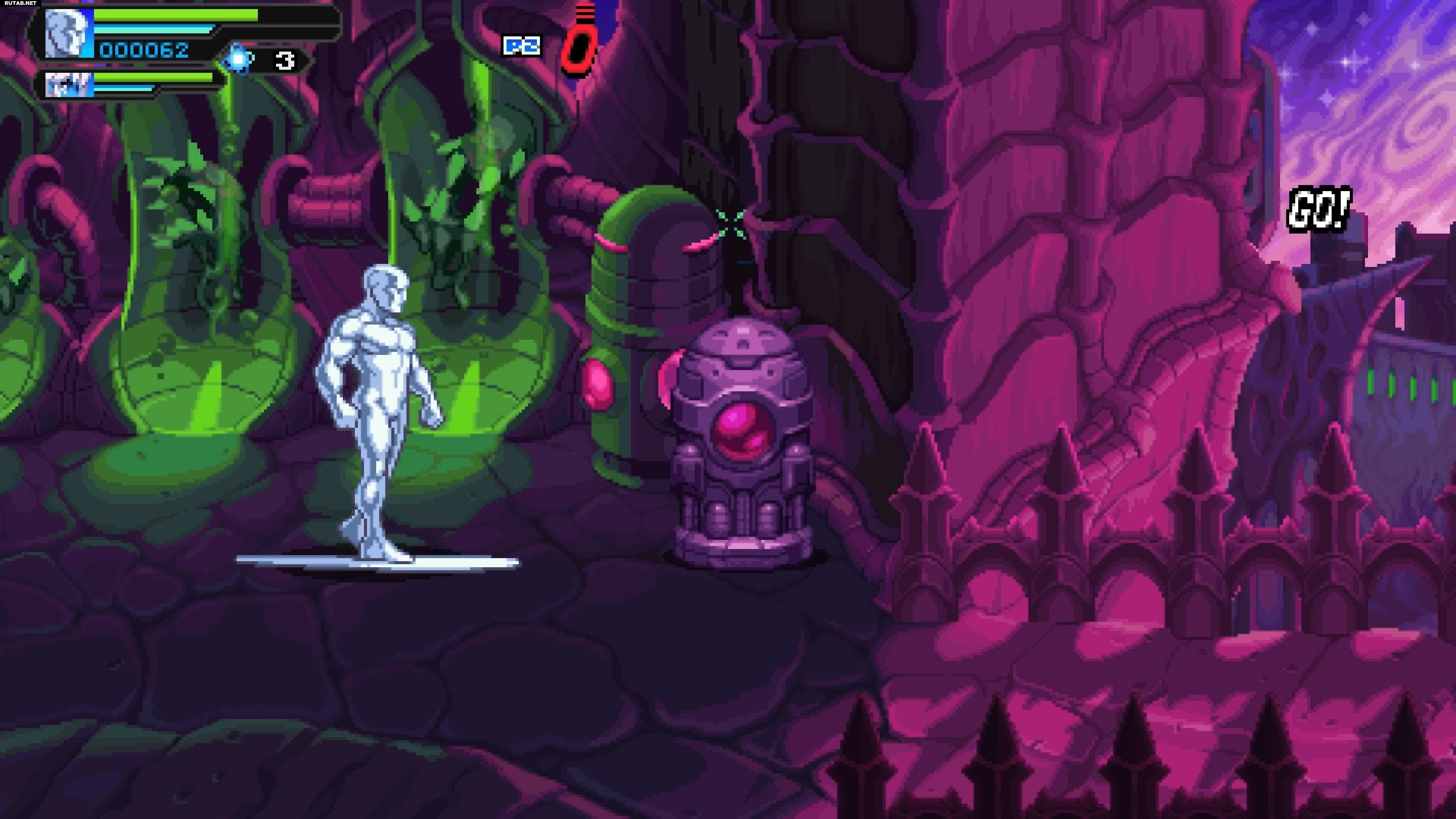«Святилище II» — один из самых длинных уровней в Marvel Cosmic Invasion, поэтому отрадно, что Куб находится довольно рано. Продолжайте двигаться вперёд, пока не попадёте на арену с большим зелёным экраном в верхней части, где будет стоять жук. Победите этих врагов, и вы обнаружите, что Космический Куб прячется в правом верхнем углу этой же комнаты.