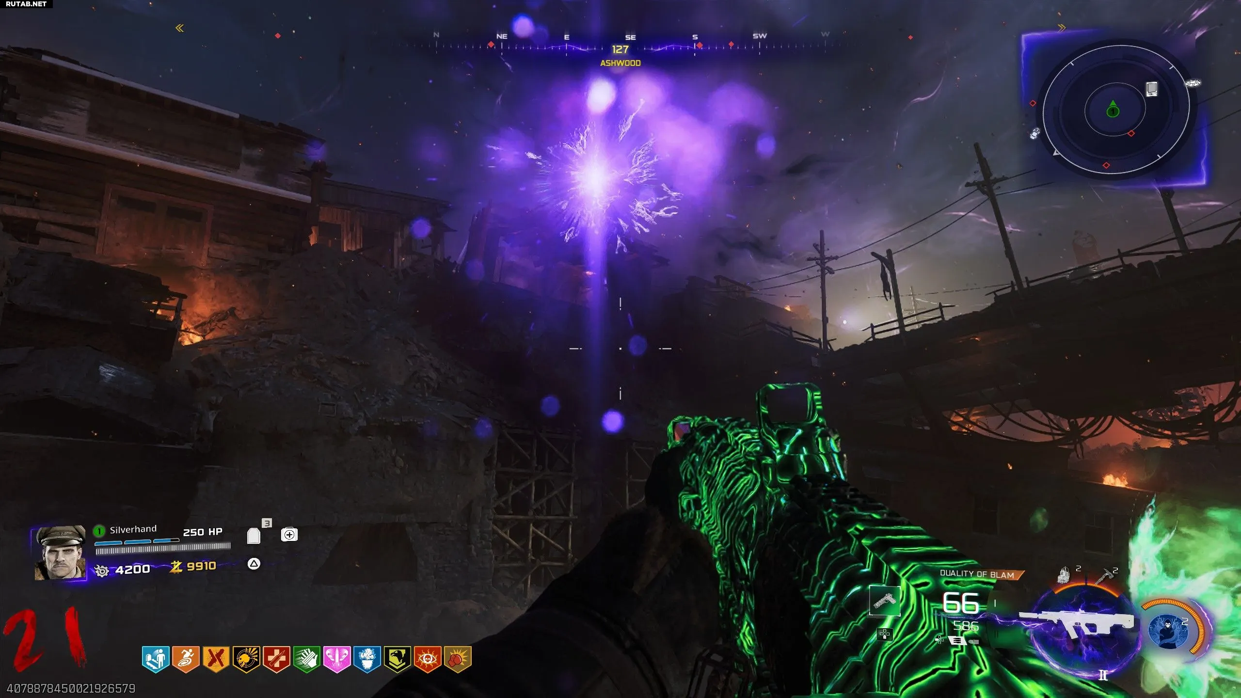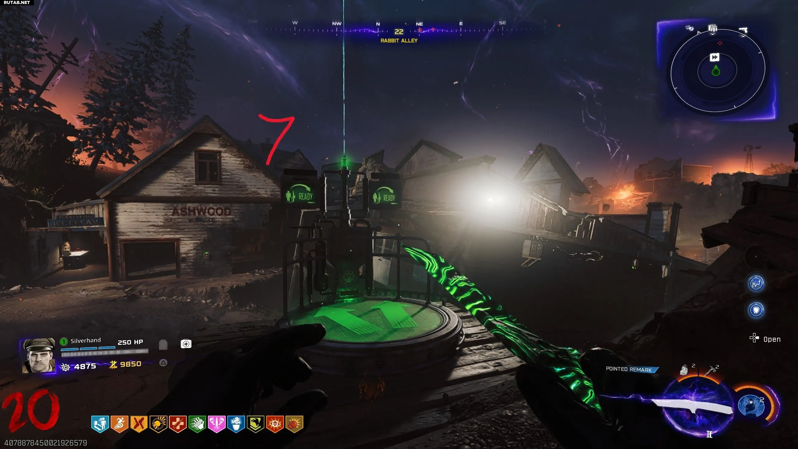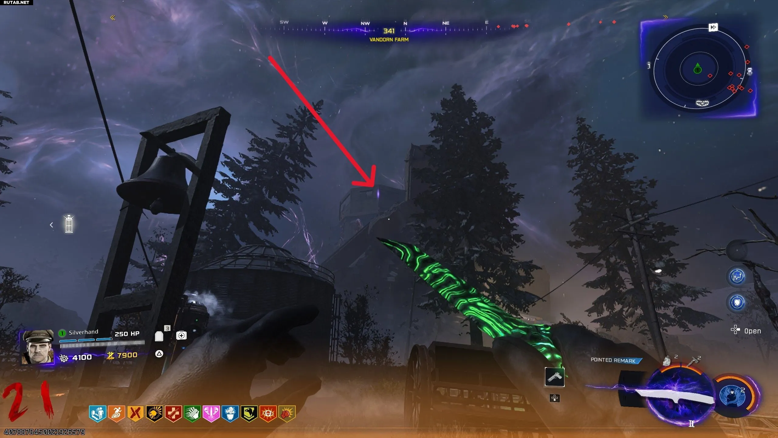 Этот портал будет находиться между любыми двумя соединенными трамплинами. Например, он может быть в Vandorn Farm по направлению к Janus Towers Plaza. Найдя портал, используйте правильный трамплин, чтобы выстрелить себя прямо в него. Это телепортирует вас в Ashwood. Откроется разлом, из которого выпадут мертвые зомби, бесплатная эссенция, бонусные очки, возможные случайные перки и, что самое важное, бесплатная Ray Gun Mark 2.