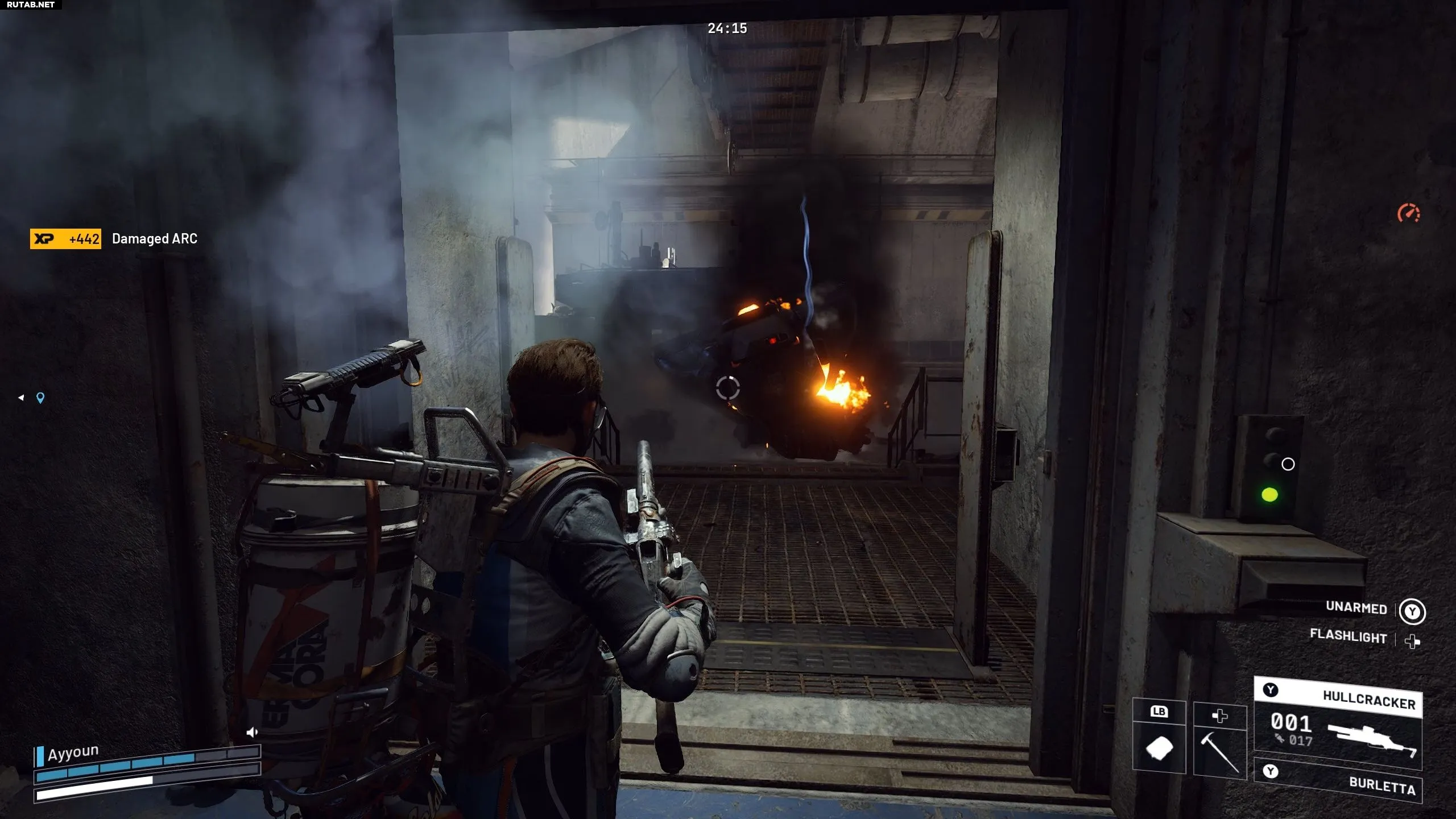 Первым делом найдите надежное укрытие, желательно в коридоре, ведущем в зону патрулирования Бастиона. Это позволит вам уклоняться от его пулеметного огня и отходить на лечение.