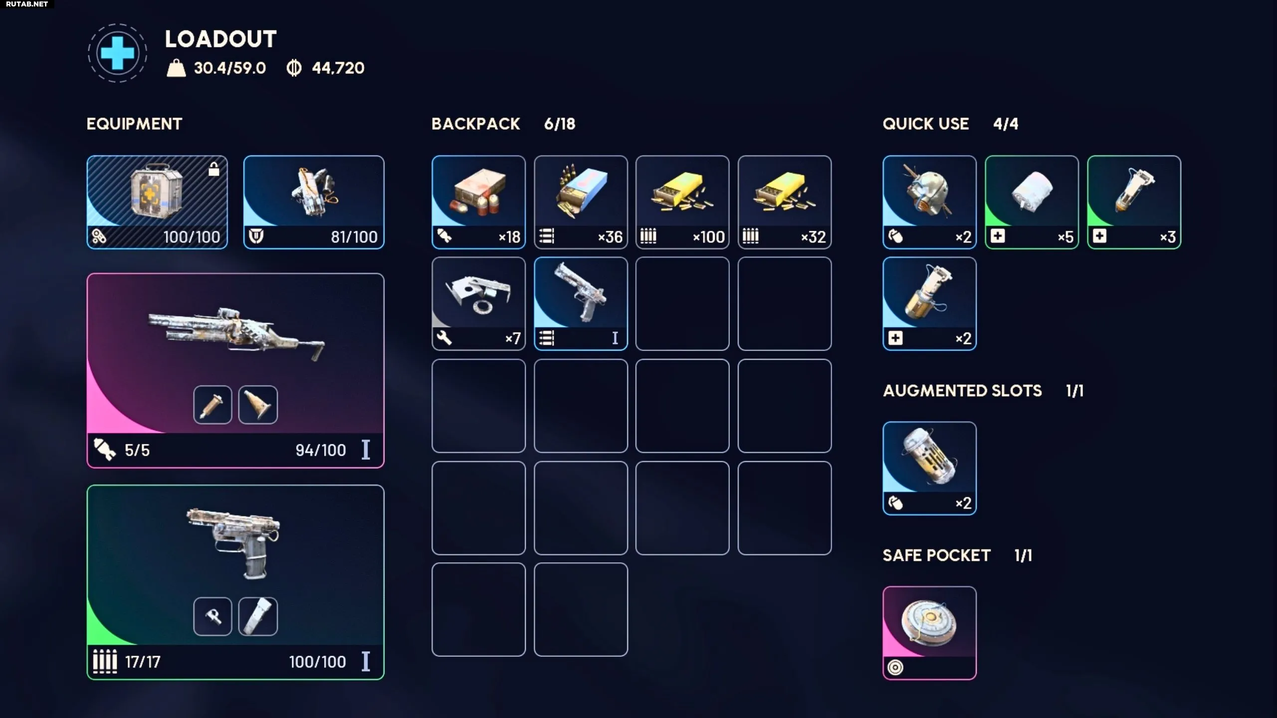 Также вам понадобится как минимум два стека патронов для гранатомета. Помимо основного оружия, запаситесь лечащими предметами и возьмите второе оружие на случай столкновения с другими рейдерами.