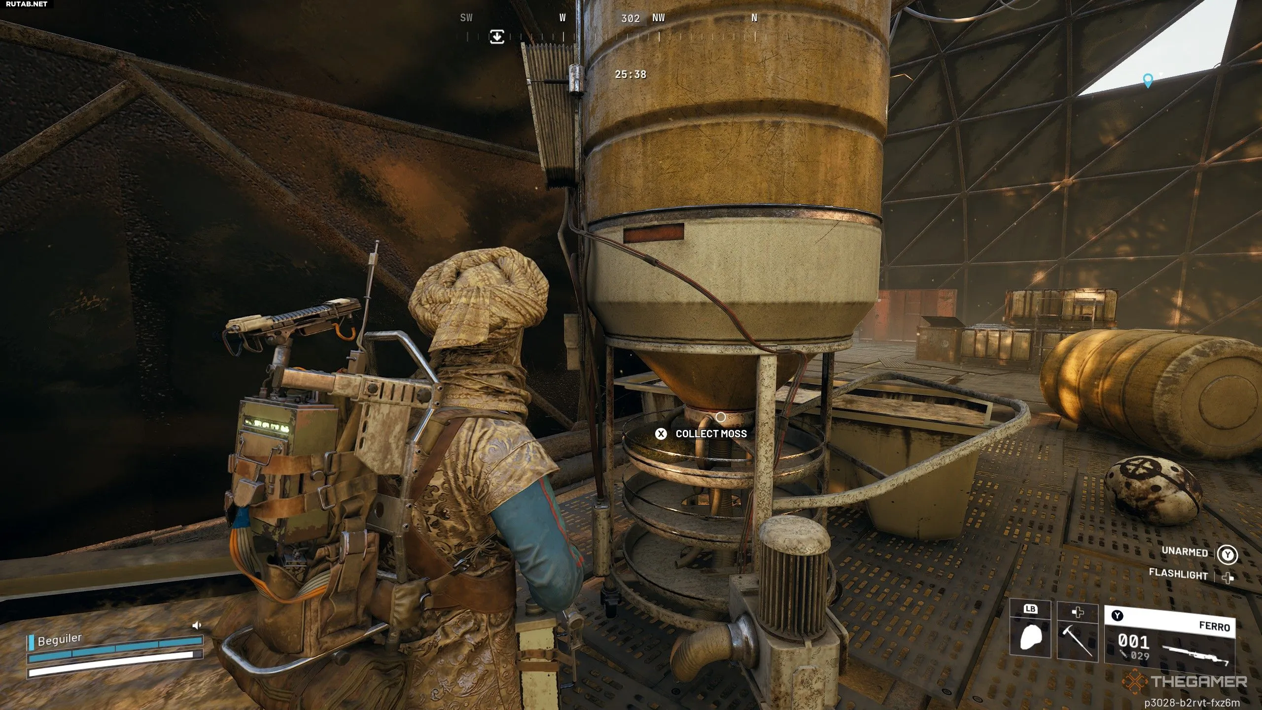 Сосредоточьтесь на поиске на больших цилиндрических стеллажах (как на изображении выше), так как на них обычно находится 1–2 единицы мха. Помните, что для сбора нужно запустить небольшую анимацию поиска, поэтому убедитесь в безопасности, прежде чем начинать. Также проверяйте корзины и ящики — иногда мох может появляться и в них.