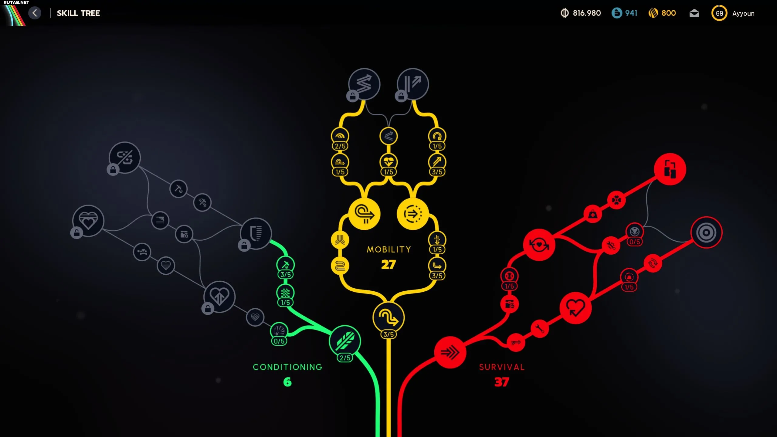 - Выживание: Чисто лутажные навыки, которые улучшают способность рейдера незаметно проникать в локации, собирать и переносить максимальное количество предметов обратно в Сперанцу