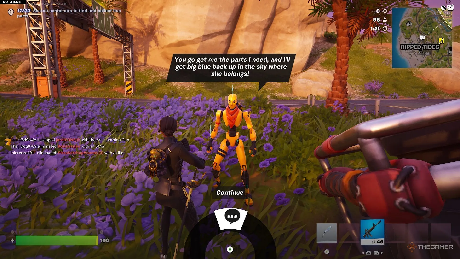 | Обыскать контейнеры, чтобы собрать 20 деталей автобуса | Контейнеры включают сундуки, ящики с боеприпасами и грузы снабжения. Детали можно собрать, удерживая кнопку взаимодействия или просто пройдя над ними. |