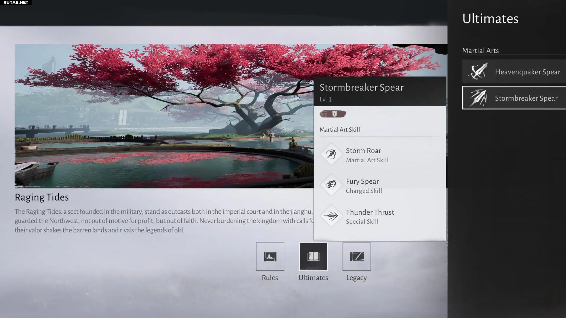Одним из лучших ранних видов оружия является Копьё Сокрушителя Бурь. Это боевое искусство специализируется на провоцировании врагов, поглощении урона и контроле толпы. Оно позволяет вам принимать удары и удерживать позицию, как танку.