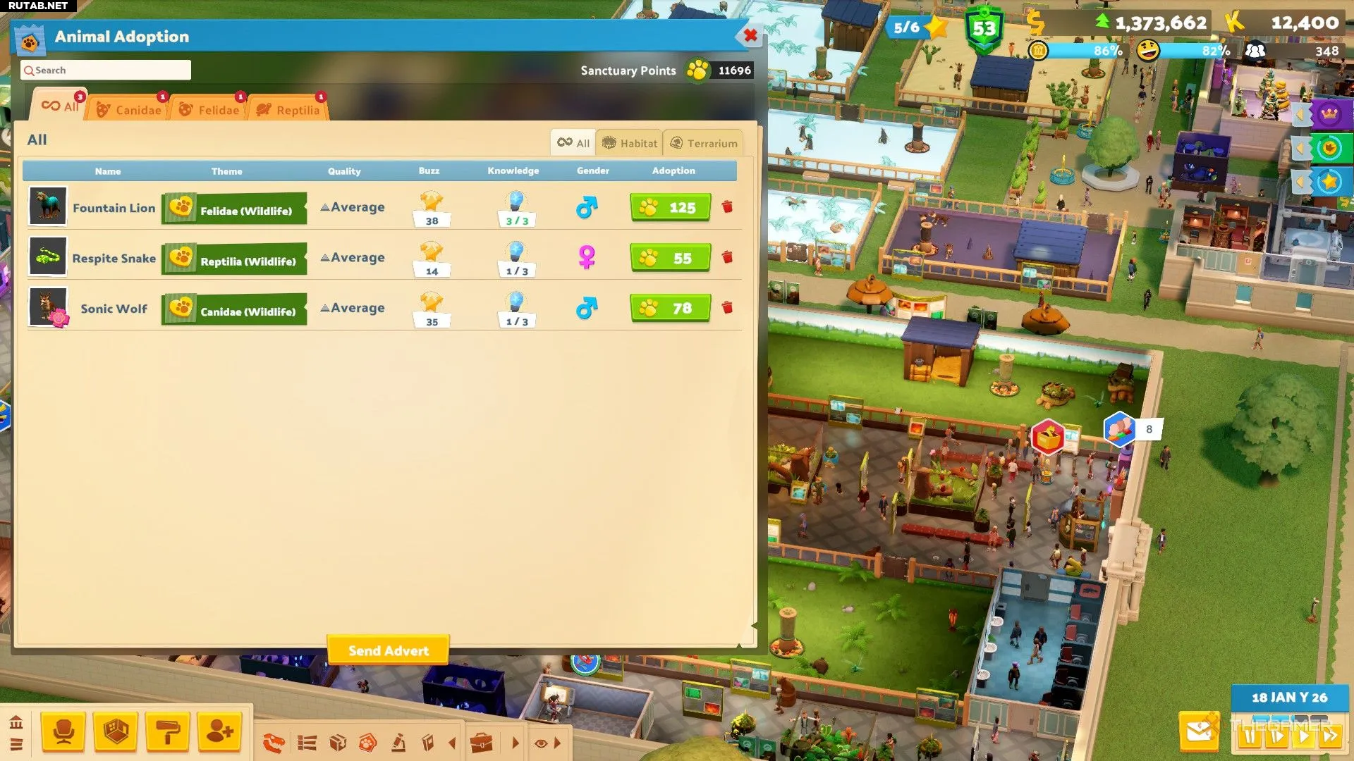 Теперь, когда вы знаете, как зарабатывать очки заповедника, пришло время узнать, где их можно потратить. Откройте вкладку «Усыновление животных» в меню экспонатов. Здесь вы сможете приобретать представителей дикой природы за свои очки.