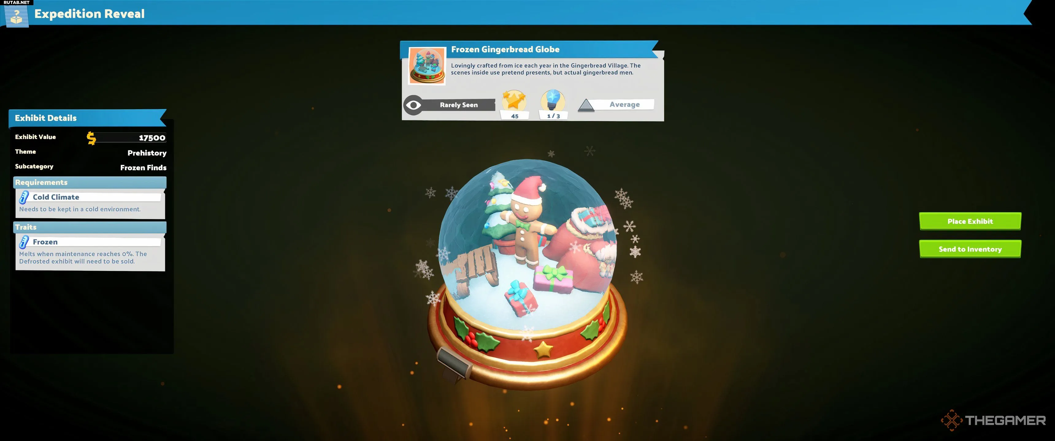 Всего добавлено четыре новых экспоната. Пряничная деревня открывает экспонат растения холодного климата и обычный экспонат холодного климата.