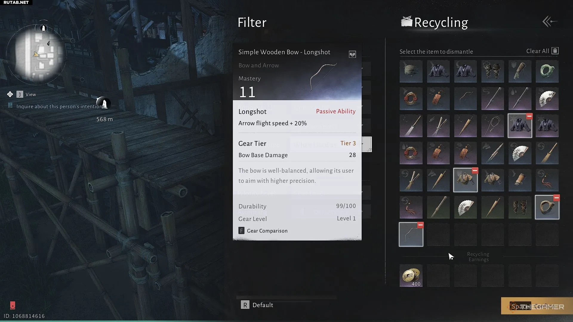Чтобы переработать старые вещи, откройте главное меню и выберите свой рюкзак. Внутри перейдите на вкладку «Снаряжение» и нажмите кнопку для переработки. Откроется меню с несколькими фильтрами, которые помогут вам отсортировать экипировку.
