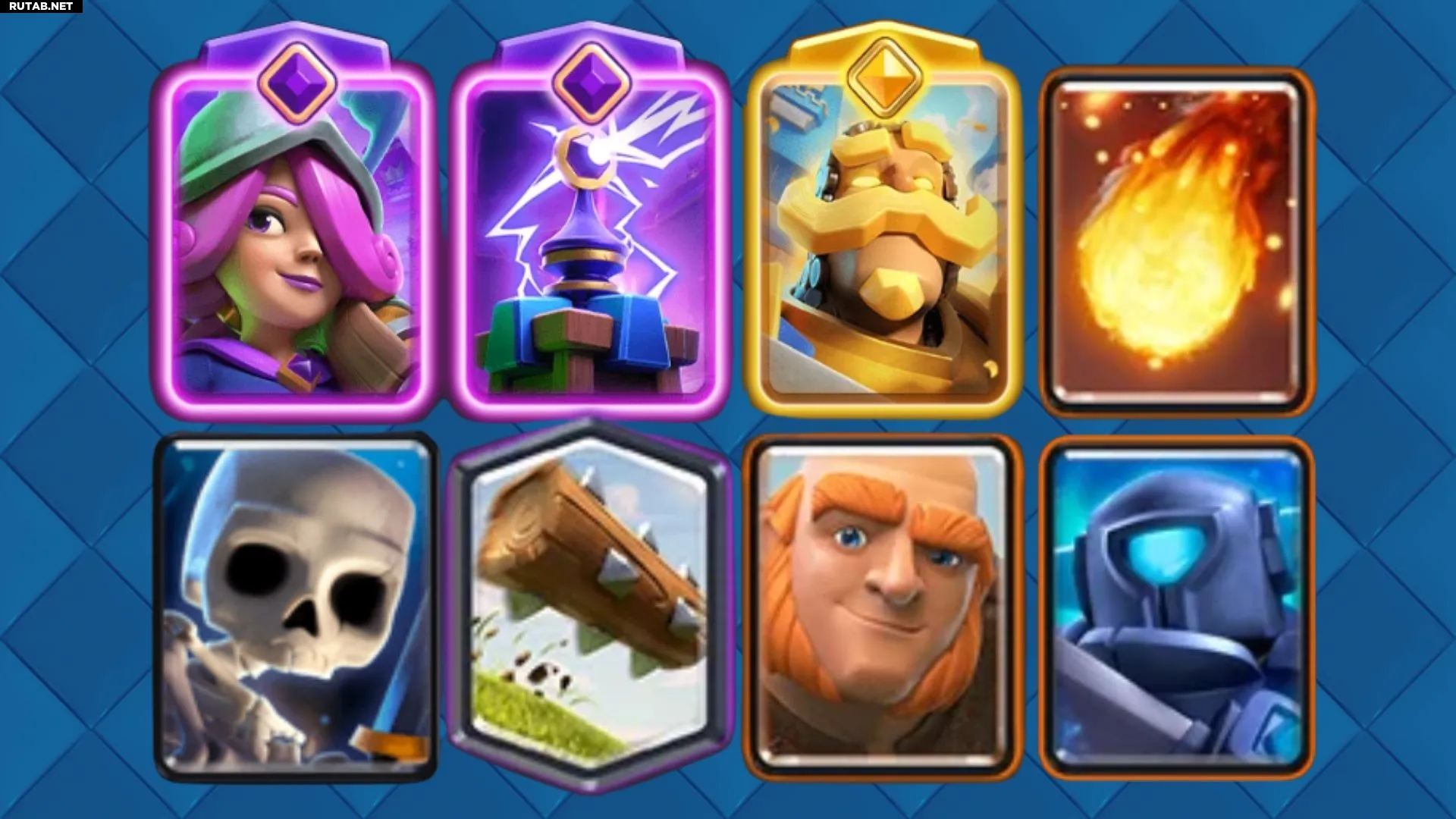 Основная идея здесь — дать Королевскому гиганту свободно наносить урон. Рыбак, Герой Мини Пекка и Охотник — главные карты, которые помогают этого добиться, в то время как остальные служат в основном для циклинга.
