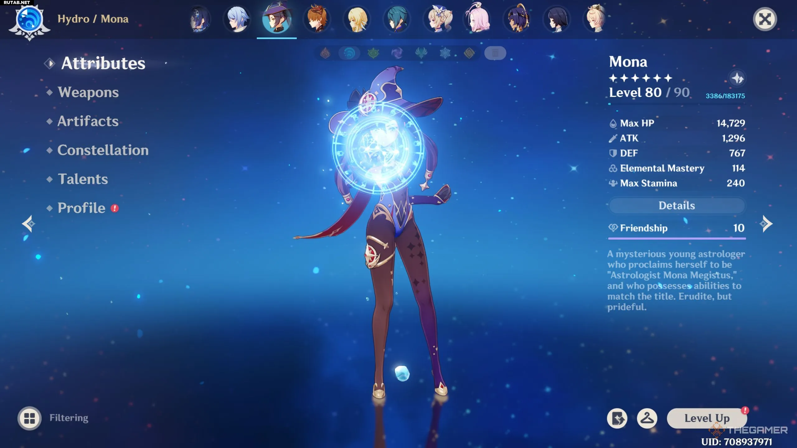 Что касается вторичных характеристик, то приоритет следующий: шанс крит. попадания и крит. урон > сила атаки (%) > восстановление энергии. Восстановление энергии не является для него критичным, так как он получает энергию от своего элементального навыка. Однако небольшое его количество (около 120-130%) может быть полезно для комфортного цикла способностей.