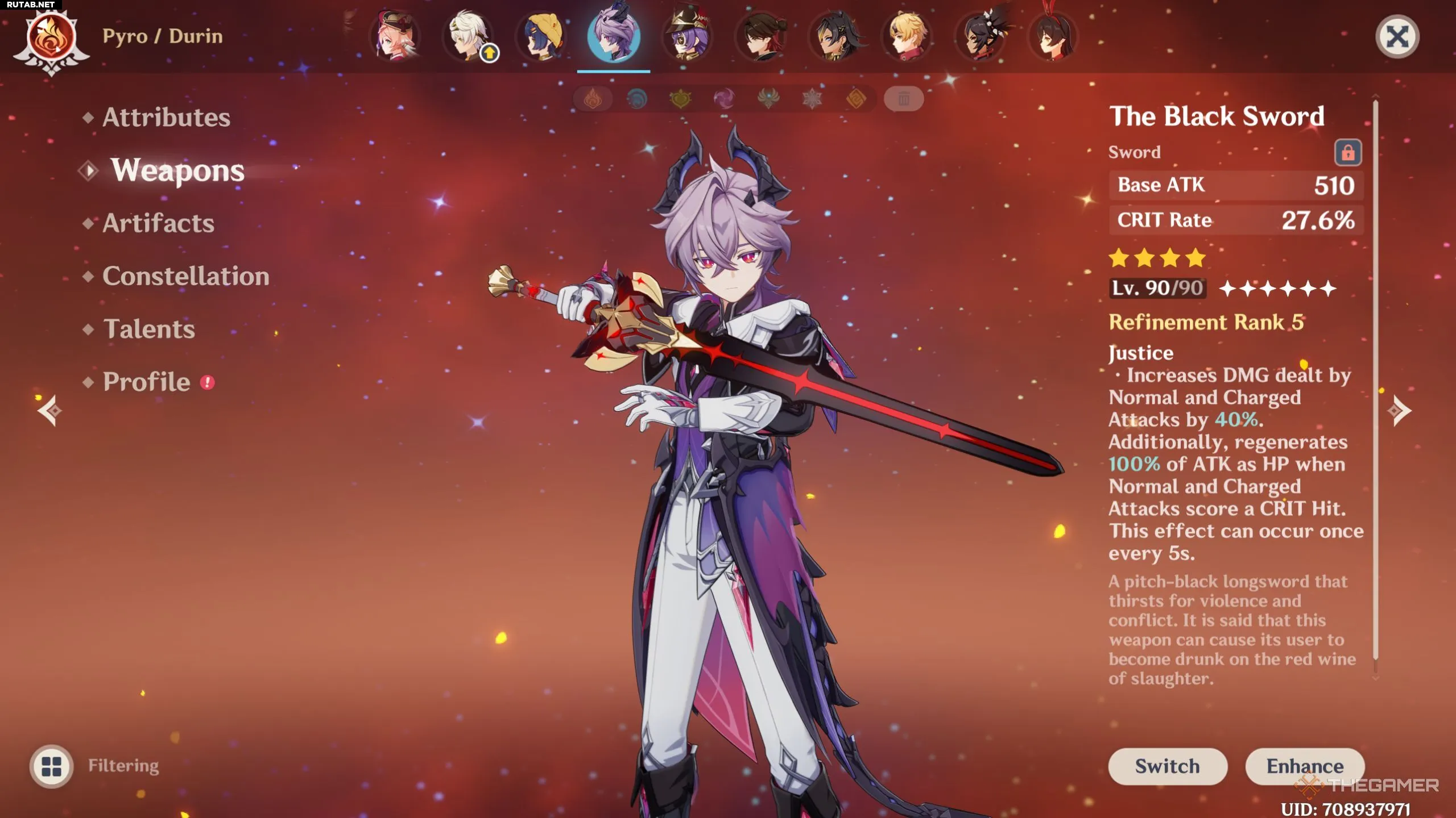 Дурин — пятизвёздочный Пиро-персонаж, который познакомил игроков с группой «Хексерай», но он может быть феноменальным напарником и без неё. Его навыки позволяют ему быть как основным дамагером, так и саппортом команды, и вы можете свободно решать, как использовать его и собирать артефакты под выбранный стиль игры.