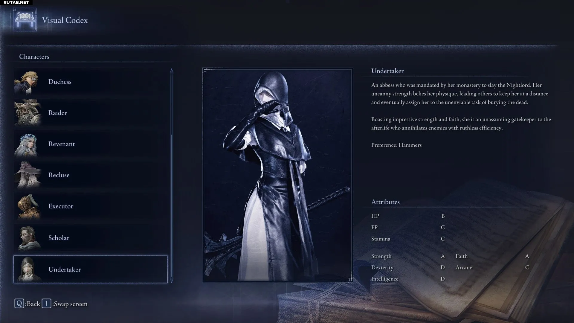 Гробовщица — это Ночной странник, который, несомненно, останется популярным на протяжении всего Царства Ночи. Эта, казалось бы, безобидная аббатиса, посланная своим монастырём убить Повелителя Ночи, способна наносить в бою сокрушительные удары. Её сила зависит как от мощи, так и от веры, что делает эту неожиданно сильную Ночную странницу невероятно эффективной в уничтожении врагов.