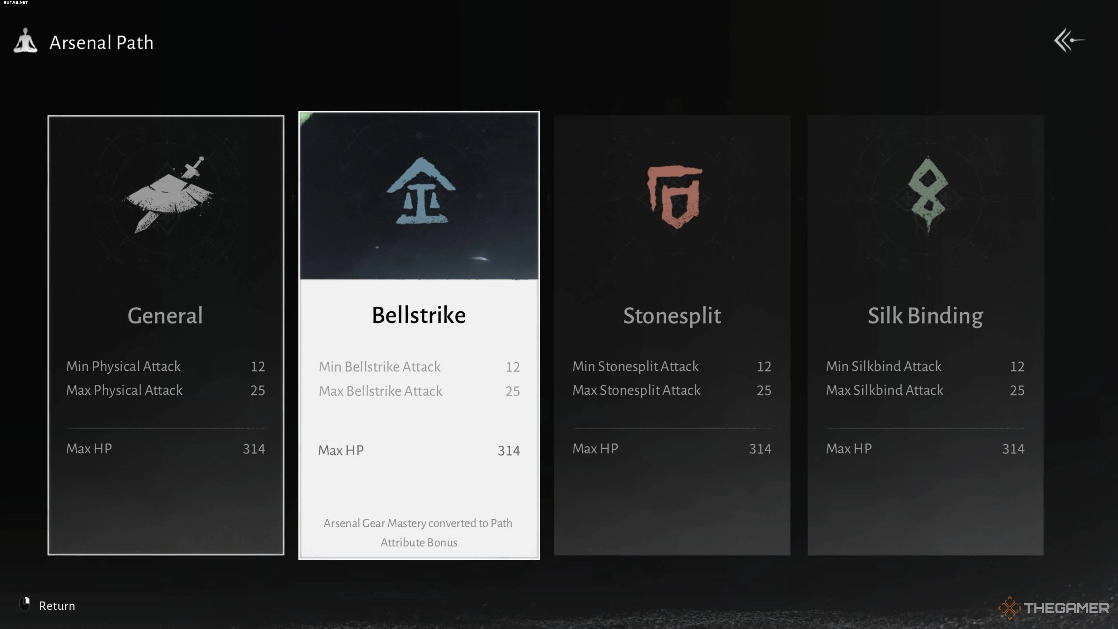 Как упоминалось ранее, Арсенал предоставляет множество преимуществ, и увеличение максимального запаса здоровья — основа для всех них. Однако вы также можете выбрать для Арсенала определённый Путь, чтобы усилить бонусы для конкретных атак. Доступны следующие Пути:
