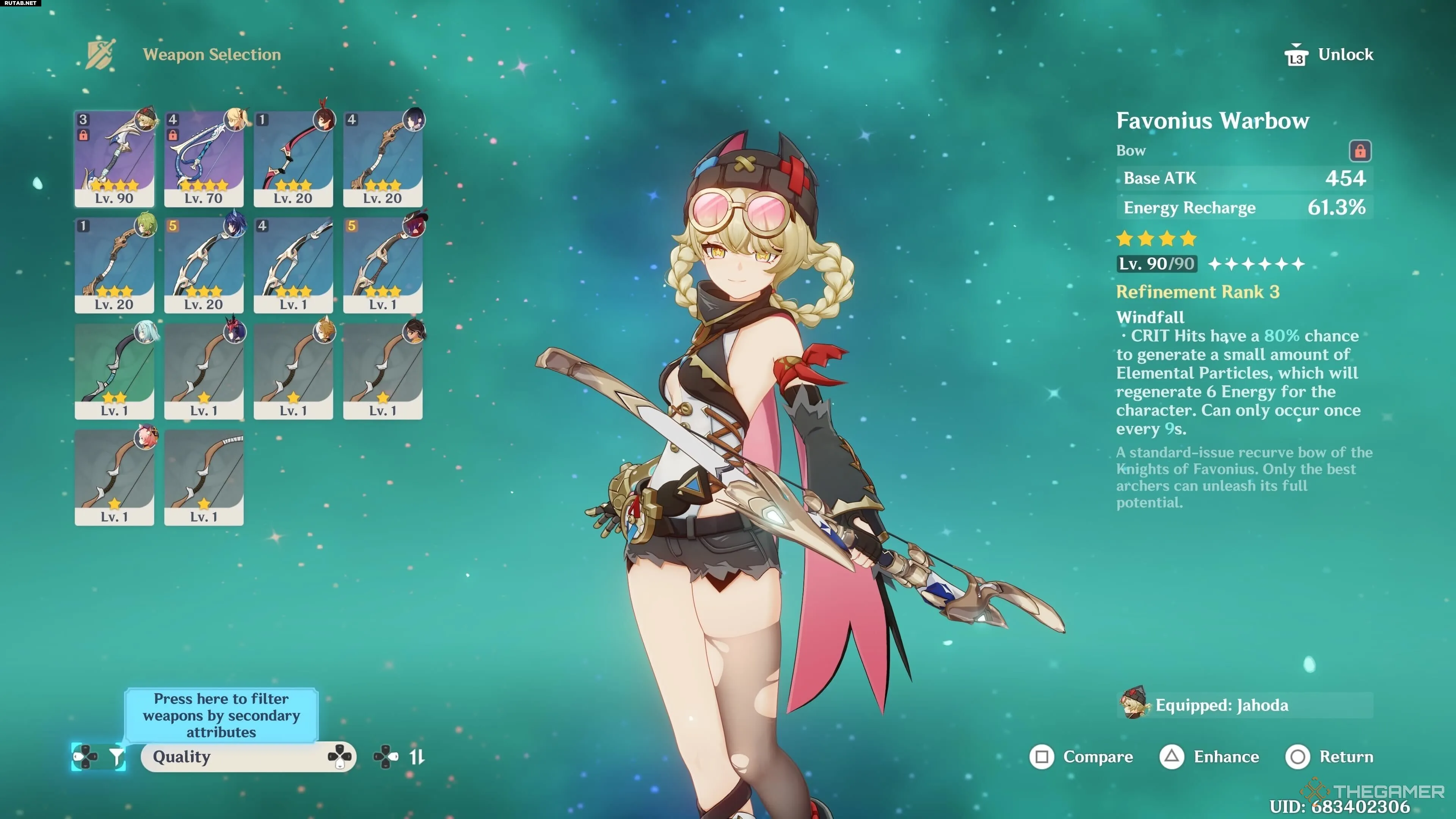 Будучи лучником, Джахода может использовать множество хороших луков. Многие из них уже появлялись на оружейных баннерах события «Песнь Нефритовой Луны», поэтому, надеемся, вы успели их получить. Существуют и другие, более доступные варианты как четырёхзвёздочных, так и пятизвёздочных луков, которые мы рассмотрим ниже.