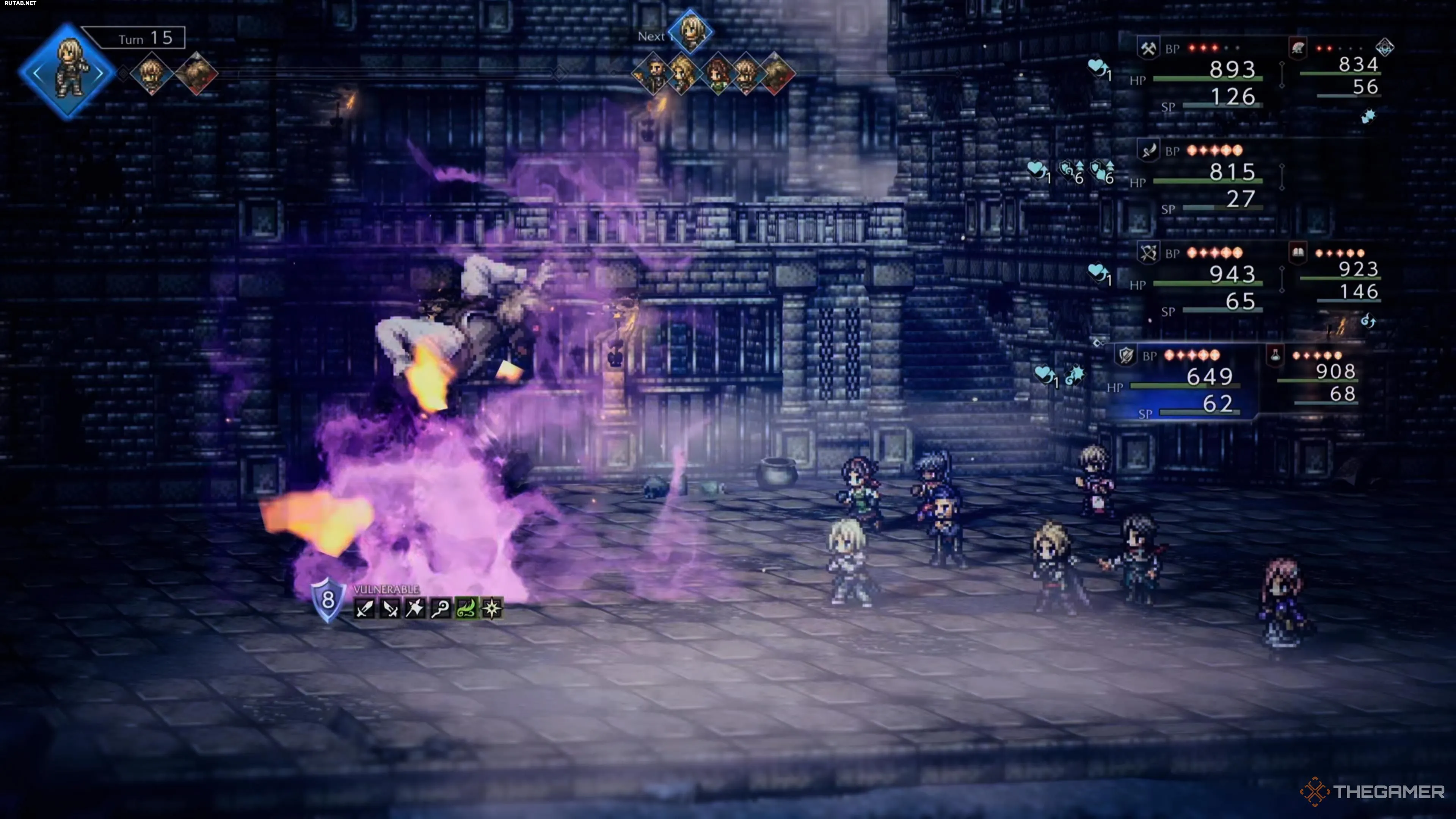 В этой битве к вам присоединится Велнорт. Он будет использовать свои способности с задней линии, и их набор зависит от количества завербованных вами персонажей. Его роль сводится к усилению отряда с помощью следующих навыков: